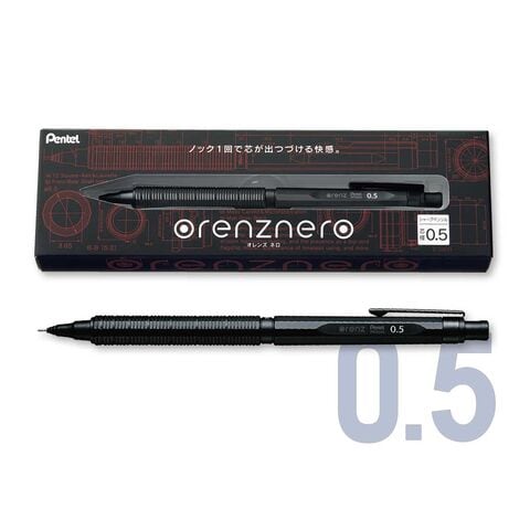 先端パイプが芯を守るオレンズシステムに加え、ペン先を紙面から離すたびに芯がでてくる自動芯出し機構を搭載。