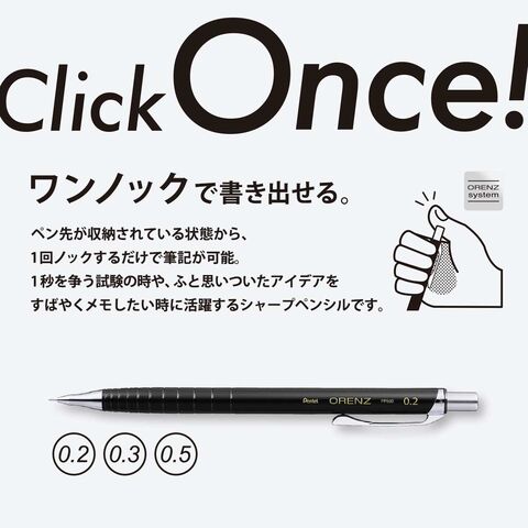 1秒を争う試験の時や、ふと思いついたアイデアをすばやくメモしたい時に活躍するシャープぺンシルです。