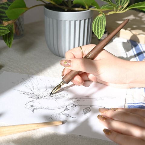 モニタリングによって決定した握り心地が良く疲れにくい形状のペン軸と、初心者にも扱いやすいつけペン先を組み合わせ。