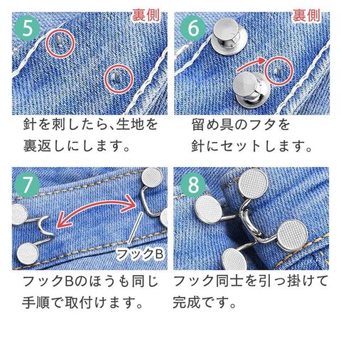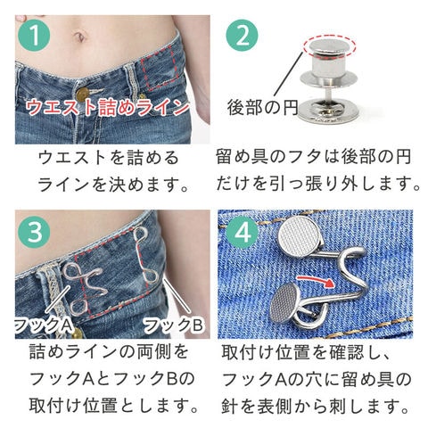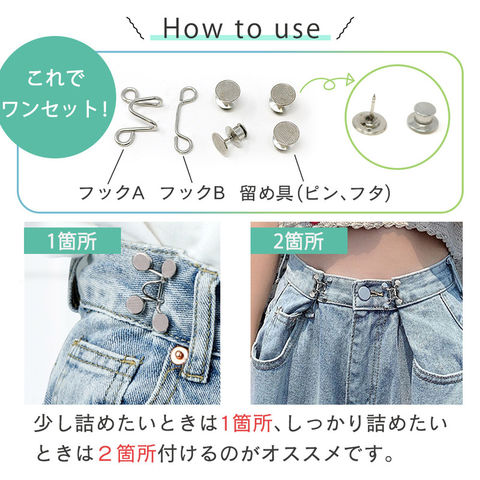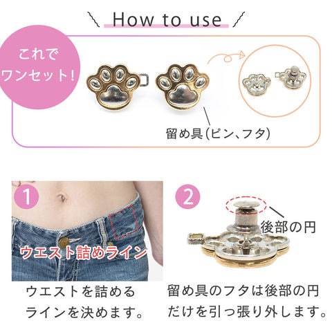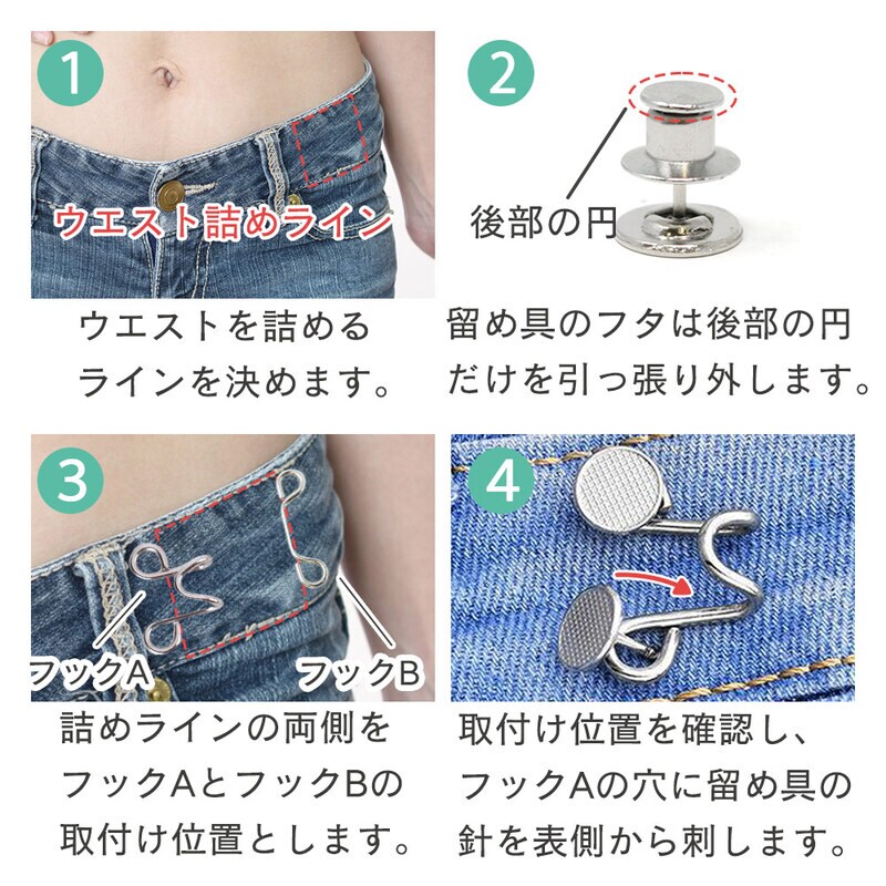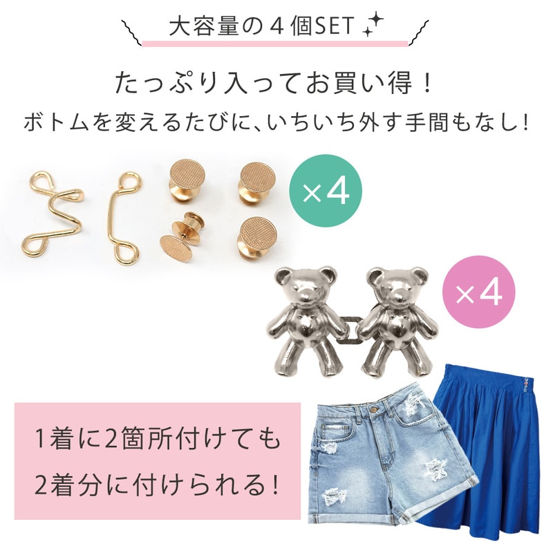ウエスト 調整 アジャスター 蝶 4組セット ウエストアジャスター ズボン ボタン ウェスト クリップ ピン スカート パンツ スラックス ウエスト大きめ 詰め 男女兼用 レディース メンズ 大きめ グッズ ガーメントボタン 子供 大人 パール