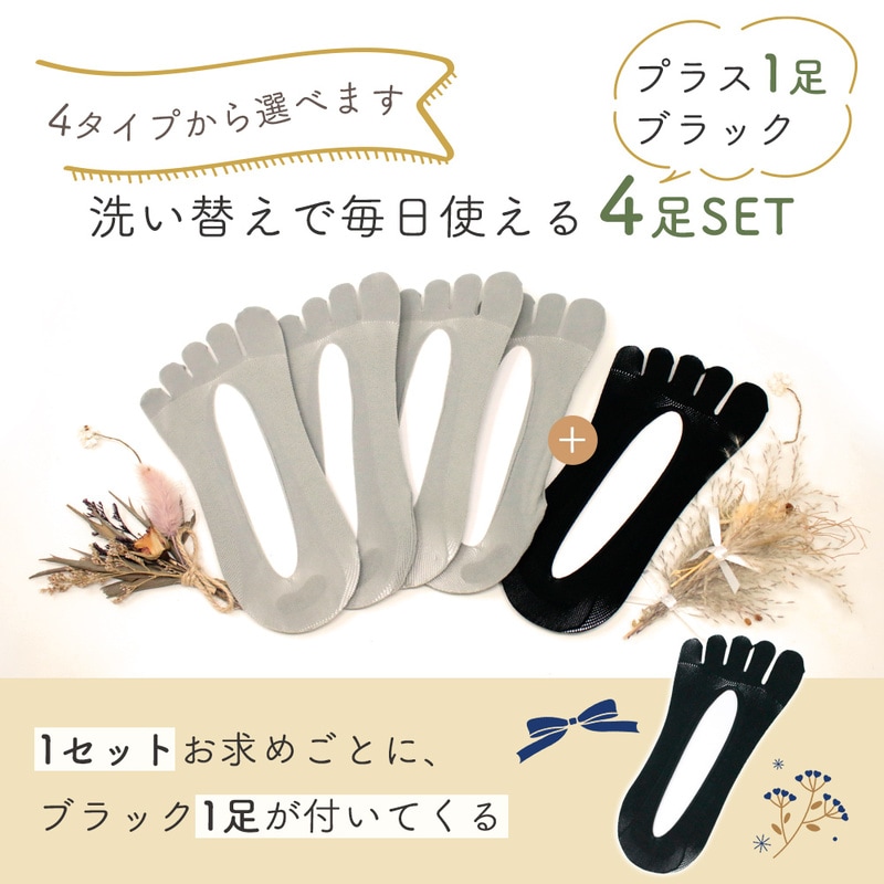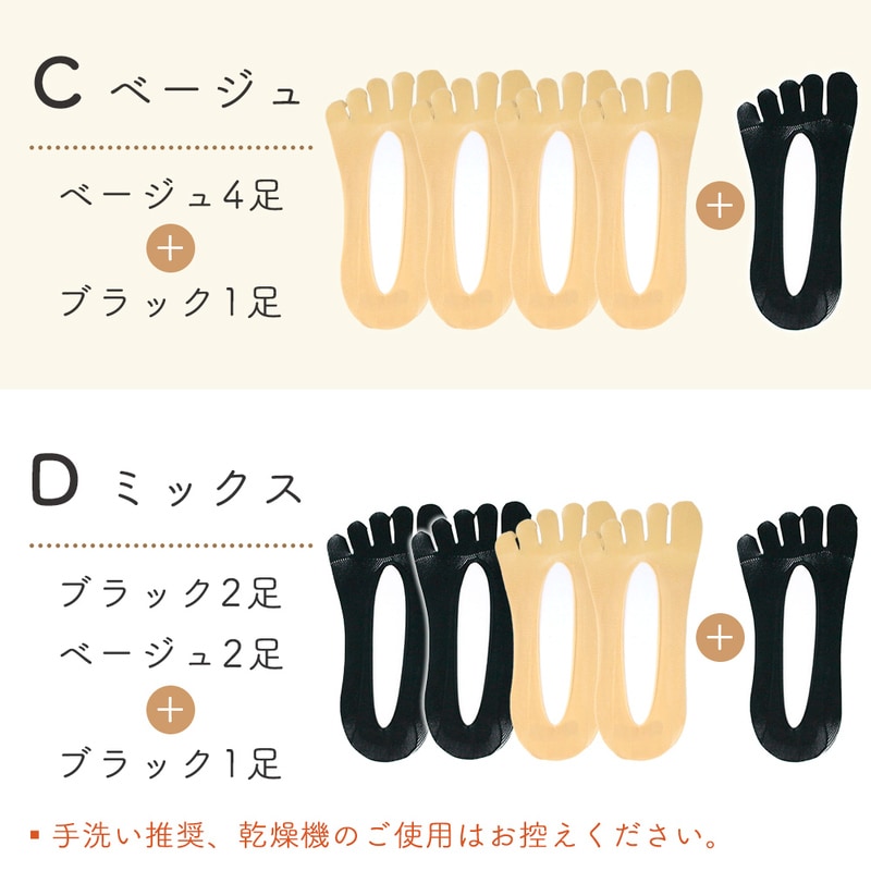 5本指ソックス 4足+1足セット 5足 浅履き セット 通気性 脱げない すべり止め 靴下 レディース ソックス 薄手 フットカバー 夏 春 ニオイ予防 蒸れない 消臭 パンプス スニーカー ムレにくい ズレない ローファ 5本指 くるぶし かわいい Dタイプ(ミックス)