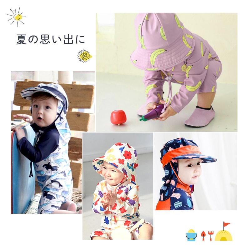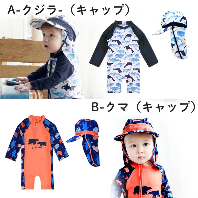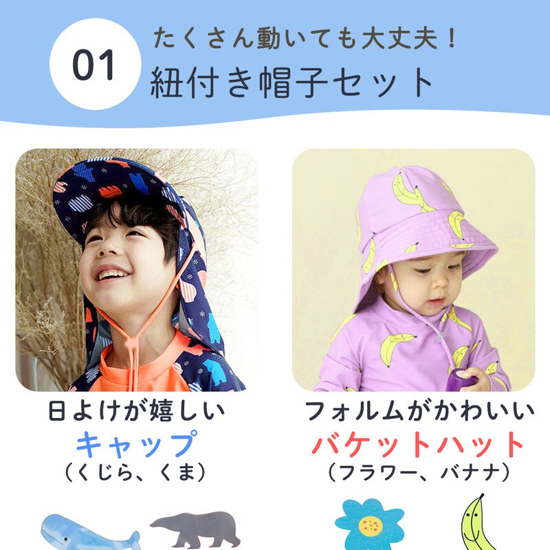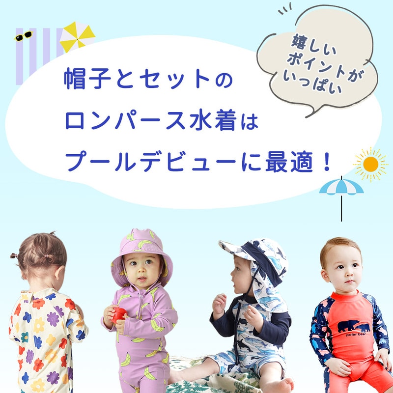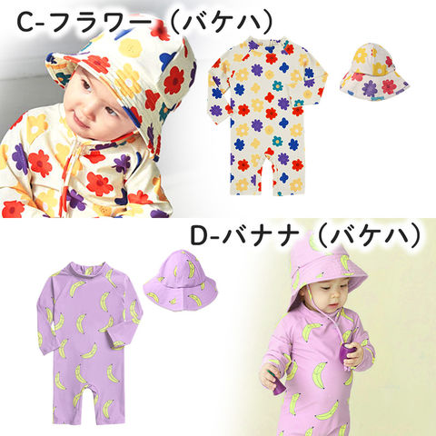 ベビー 水着 2点セット 男の子 帽子付き ロンパース かわいい 80 90 100 ベビー水着 帽子 ラッシュガード ベビー 長袖 キッズ 水着 子供 こども キッズ男の子 女の子 伸縮 ジュニア 赤ちゃん 新生児 日除け UV対策 フラワー(バケハ)