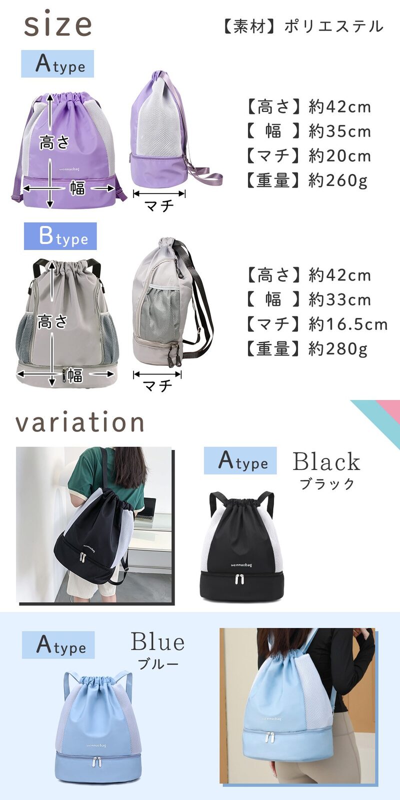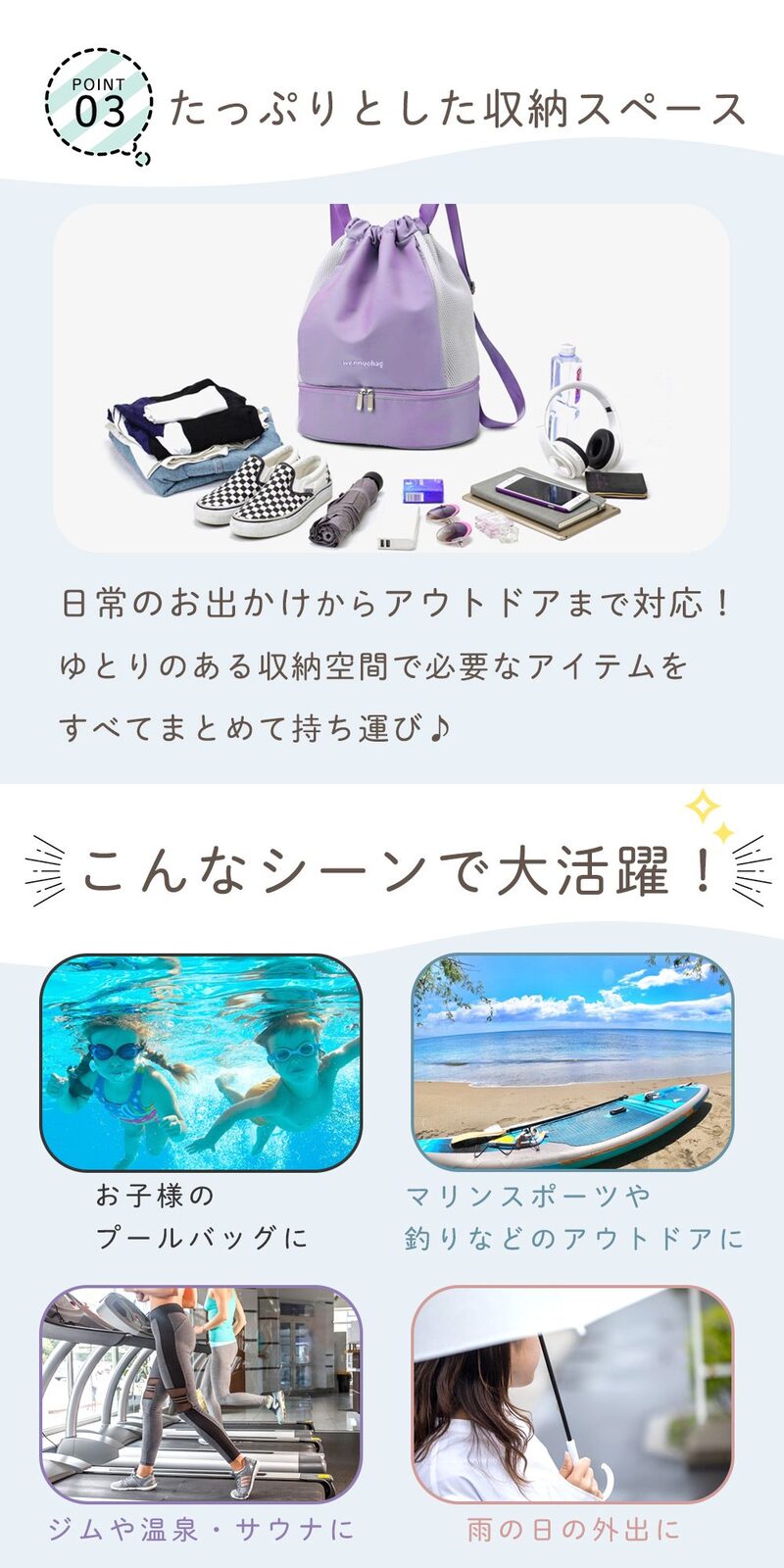 プールバッグ パープル Aタイプ 女の子 男の子 リュック プール 海 レジャー 不透明 大容量 かわいい シンプル 撥水 水着 ナップサック スイムキャップ ゴーグル タオル ビーチバッグ ポケット スポーツバッグ ファスナー スイミング キッズ 小学校 幼稚園 子供