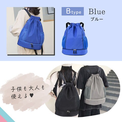 ビーチバッグとしても活用できるたっぷり容量。2層式の内部には仕分けしやすいポケットがついており、濡れた水着やタオル、シューズ、スイミング用品、サウナグッズなどを分けて収納可能です。スポーツバッグやジムバッグとしてもお使いいただけます。