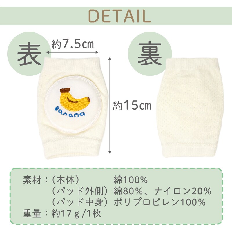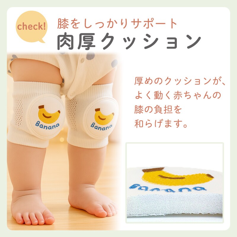 赤ちゃん 膝サポーター バナナ ベビー 膝パッド ハイハイ 膝 当て クッション 膝あて 男の子 女の子 パッド 衝撃 負担 軽減 対策 伸縮 伸びる 保護 メッシュ 子ども 子供 こどもセーフティ 怪我 防止 通気性 春 夏 秋 冬 オールシーズン かわいい 1歳 2歳