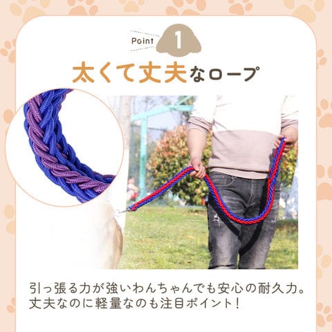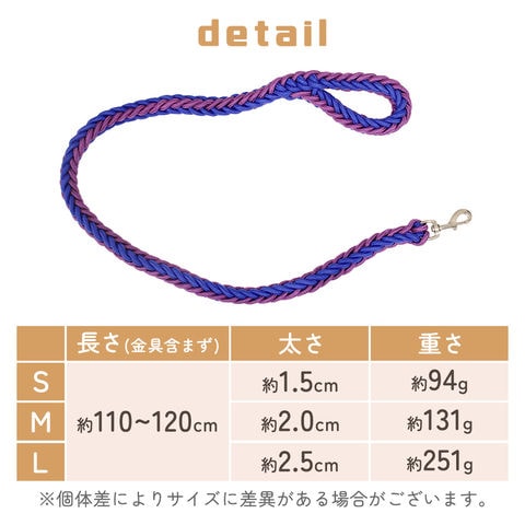 犬用 ロープリード パープル×ブルー Sサイズ 丈夫 リード 大型犬 おしゃれ 太め 中型 中型犬 大型 子犬 ロープタイプ ドッグリード 散歩 お出かけ トレーニング 頑丈 ストラップ 散歩用リード カラフル ナスカン 握りやすい 軽量 柔らか 定番 長い 手が痛くない 持ち手