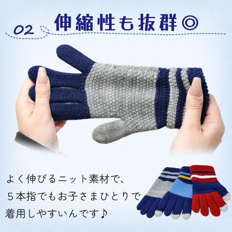 キッズグローブ レッド B-バイカラー 男の子 キッズ手袋 ボーイズ ニット手袋 ニット 防寒 防寒対策 冬 てぶくろ 寒さ対策 裏起毛 あったか 5本指 子供用手袋 子供 こども グローブ おしゃれ かわいい 子供用 秋冬 秋 雪遊び 小学生 学校 通学 低学年 防風
