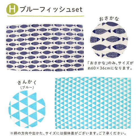 ランチョンマット H-ブルーフィッシュ2枚セット 小学校 コットン 9枚 大きめサイズ 大判 給食マット ランチマット ランチクロス テーブルクロス テーブルマット 給食 子供 子ども 男の子 女の子 長方形 綿 コットン ランチ 洗える 小学生 入園準備 入学準備 保育園