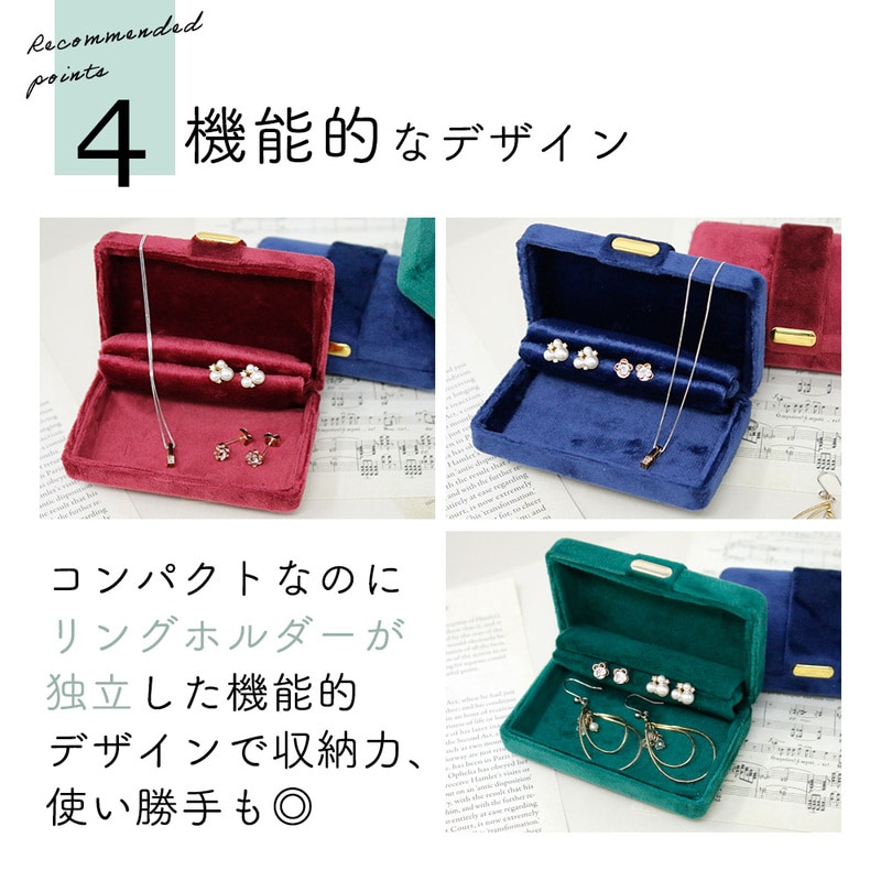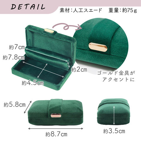 ジュエリーケース 携帯用 グリーン 持ち運び ケース 宝石 指輪 プロポーズ ピアス イヤリング リング アクセサリーケース ハードケース ベロア調 おしゃれ 可愛い ジュエリーボックス リングケース