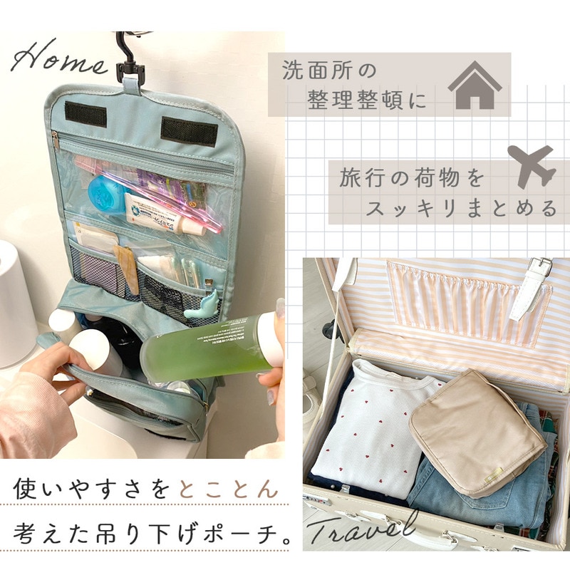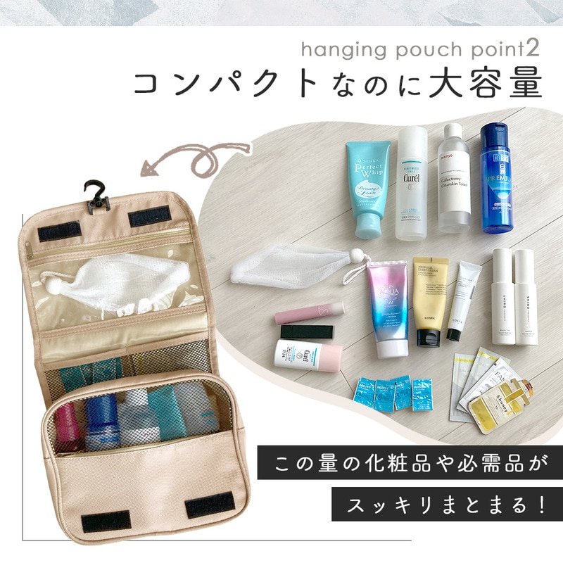吊り下げポーチ 小物 収納 吊り下げ収納 バッグ 吊り下げ ポーチ コンパクト 小物入れ 大容量 収納ポーチ トラベルポーチ 旅行 旅行収納バッグ 海外旅行 かわいい 手提げ パッキング パッキングポーチ コスメ コスメポーチ メイクポーチ 化粧品 ベージュ