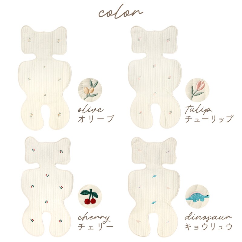 ベビーカーシート オリーブ キルティング シートクッション 快適 蒸れない 通気性 洗える 洗濯可能 折りたたみ 収納 持ち運び 綿100% コットン メッシュ 新生児 春夏 オールシーズン 秋冬 チャイルドシート 赤ちゃん かわいい