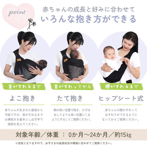 ベビー メッシュ スリング 新生児 抱っこ紐 抱っこ コンパクト 軽量 横抱き メッシュ生地 オールシーズン 赤ちゃん あかちゃん 抱っこひも 旅行 外出 男の子 女の子 バックルスリング 首すわり前 だっこひも グレー