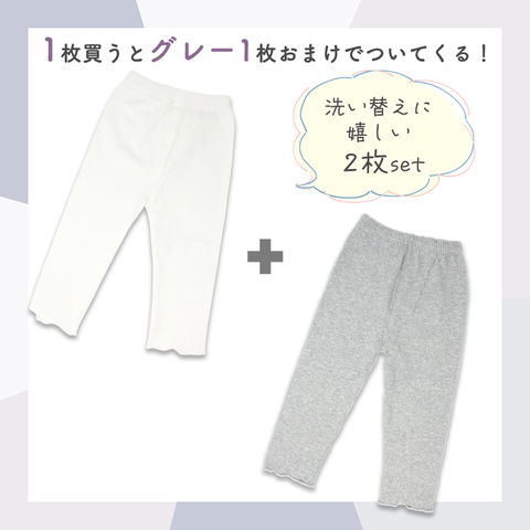 ベビー レギンス ホワイト 80cm フリル おまけ付き 2枚セット 女の子 裾メロウ ストレッチ 伸びる 80cm 90cm 100cm かわいい スポーツ ベビースパッツ ガールズ 綿 コットン 春 夏 レギパン タイツ