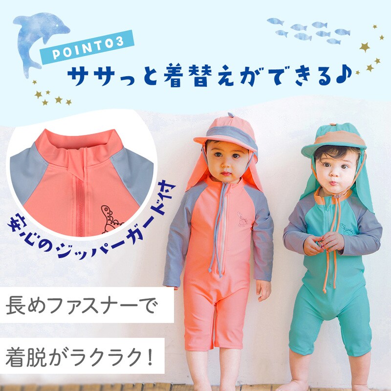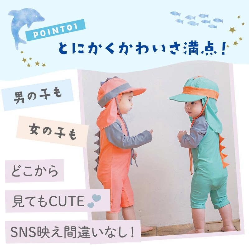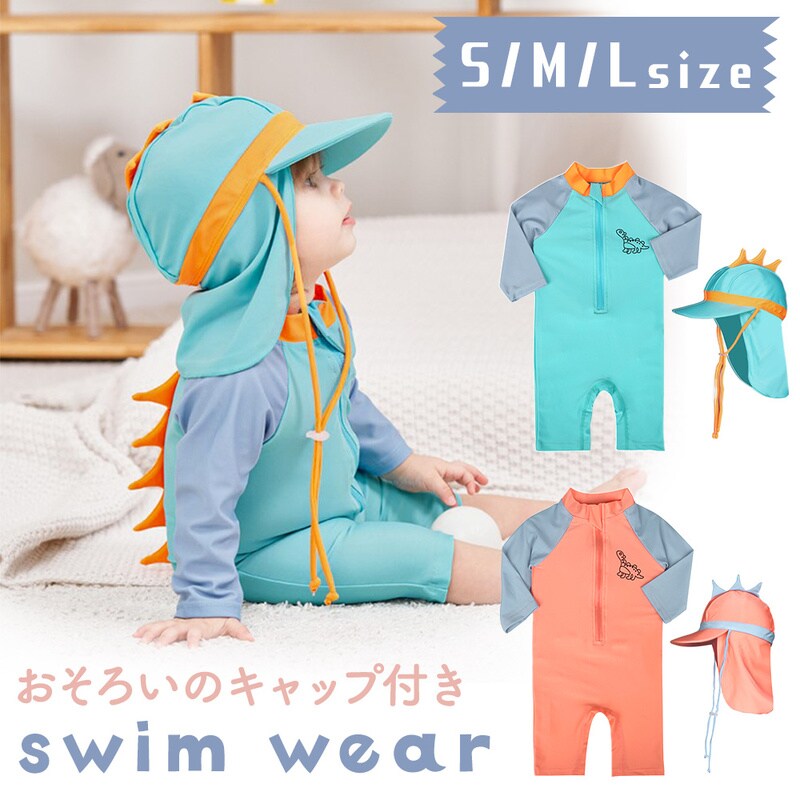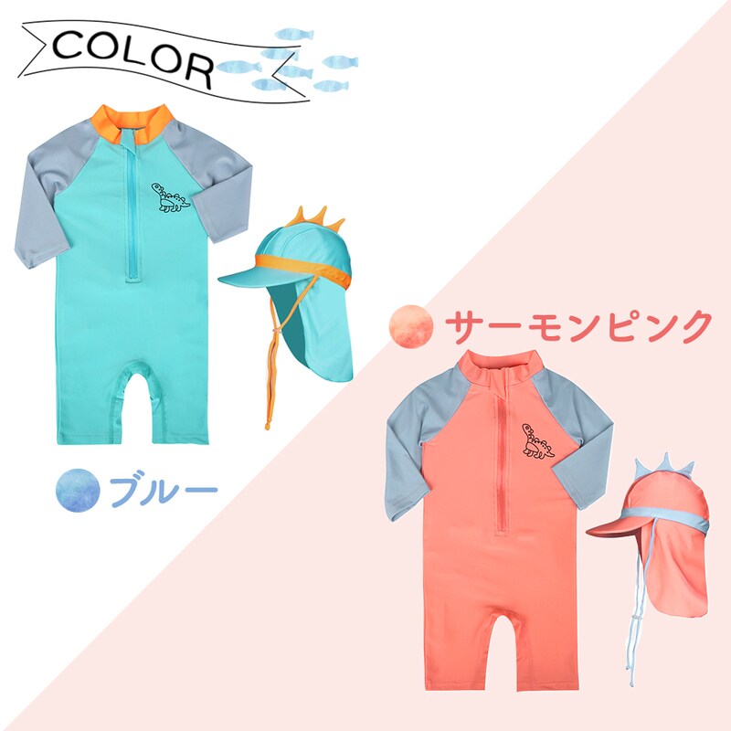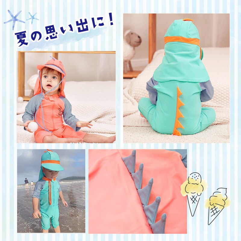 キッズ ラッシュガード ロンパース 恐竜 子供 水着 男の子 女の子 かわいい おしゃれ プール 海 長袖 帽子 キャップ付き フード 日焼け対策 日差し 日除け帽子 子供用水着 キッズ水着 夏用 インスタ映え ジュニア 海水浴 ピンク L