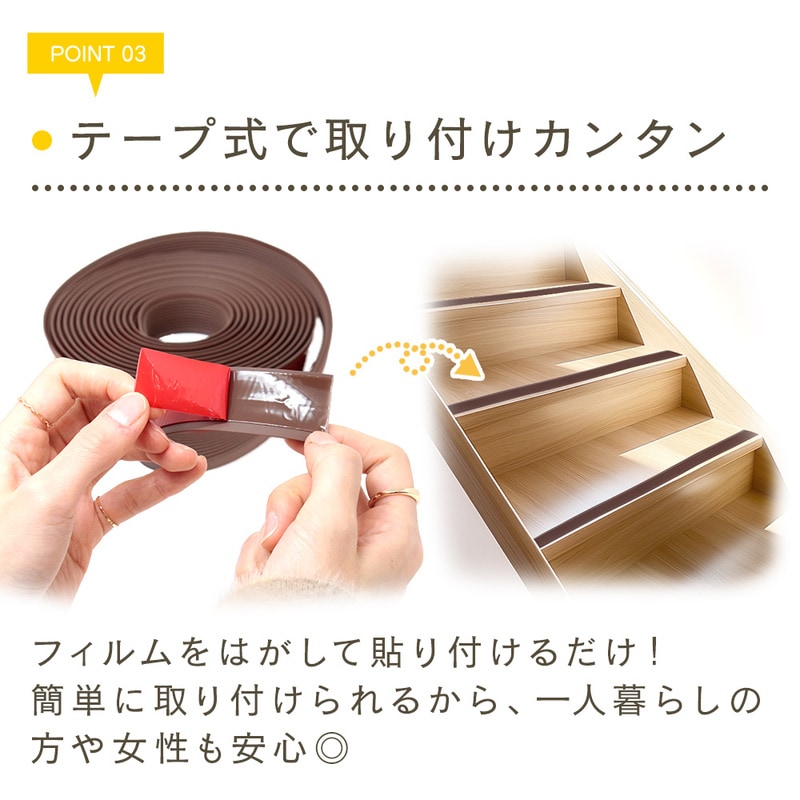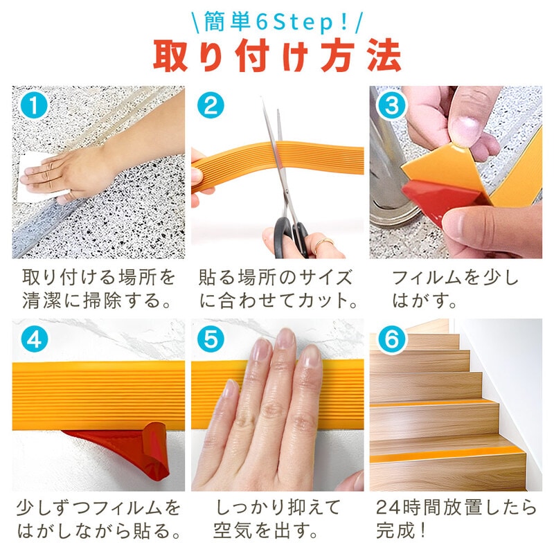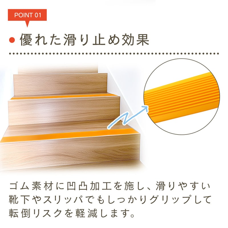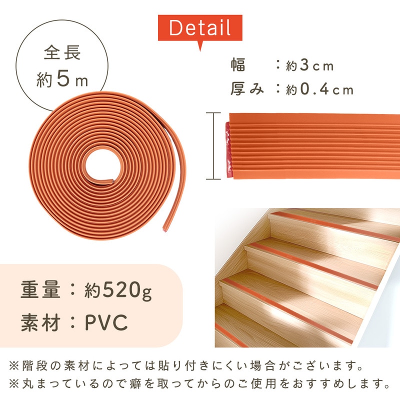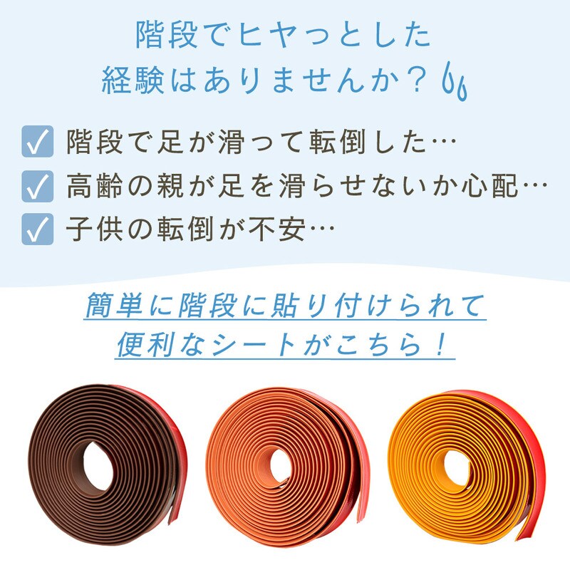 階段すべり止めシート 5m スリップ 転倒防止 幅3cm 取り付け簡単 カット サイズ調整 テープ式 介護 ペット 犬 猫 子供 子ども 高齢者 施設 ゴム製 公共施設 屋外 屋内 室内 強力 貼るだけ 落下 安全対策 マット 粘着テープ ハサミで切れる オレンジ
