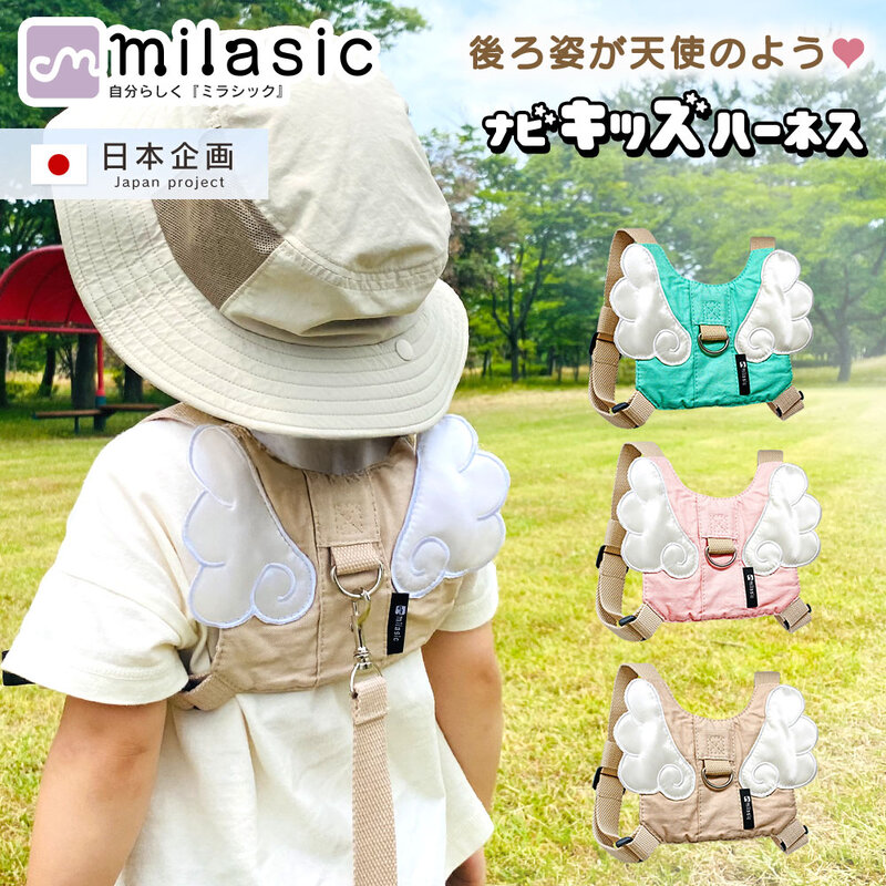 ナビキッズハーネス 迷子紐 ハーネス 子供用 キッズハーネス 飛び出し防止 こども 子ども 迷子防止 安全 ベルト 迷子対策 ベビー 赤ちゃん かわいい おしゃれ 男の子 女の子 幼児 1歳 2歳 3歳 保育園 幼稚園 通園 公園 旅行 イチゴミルク