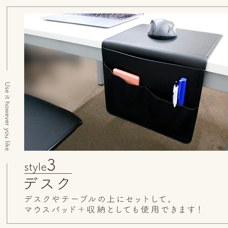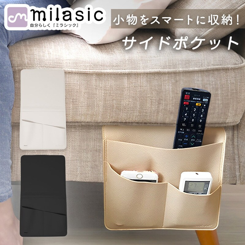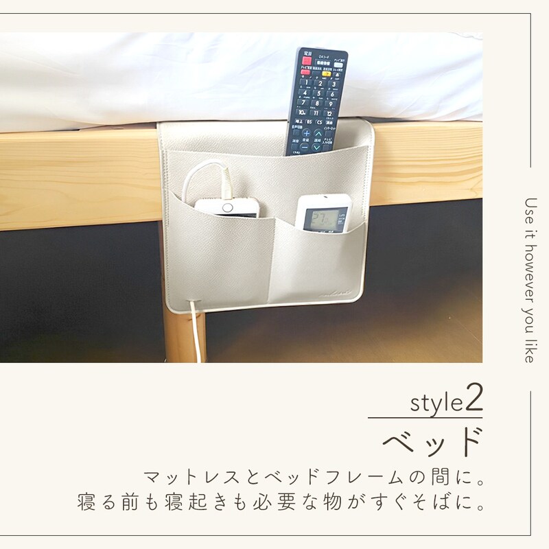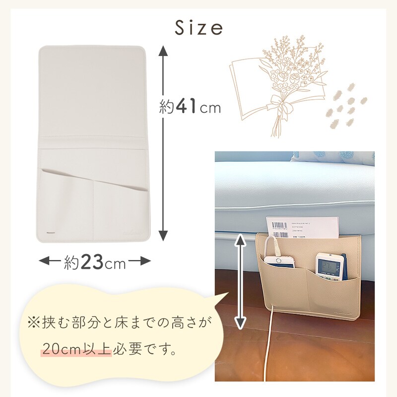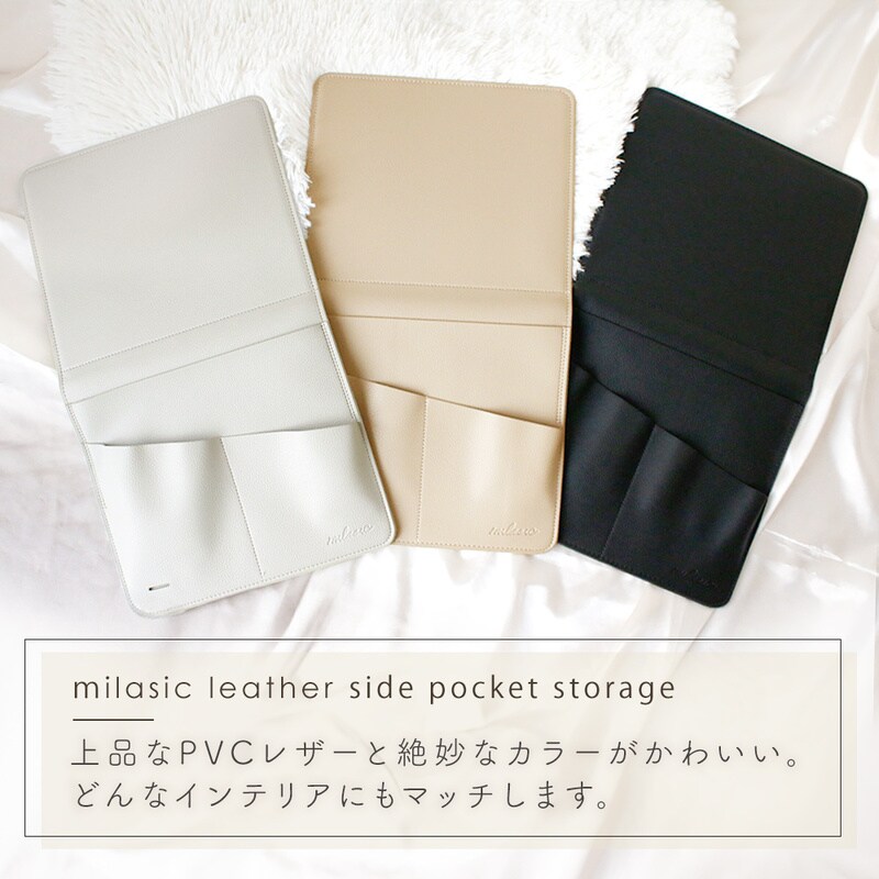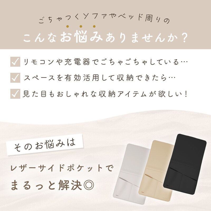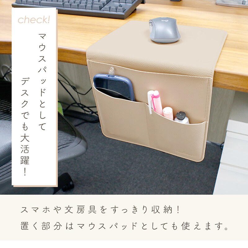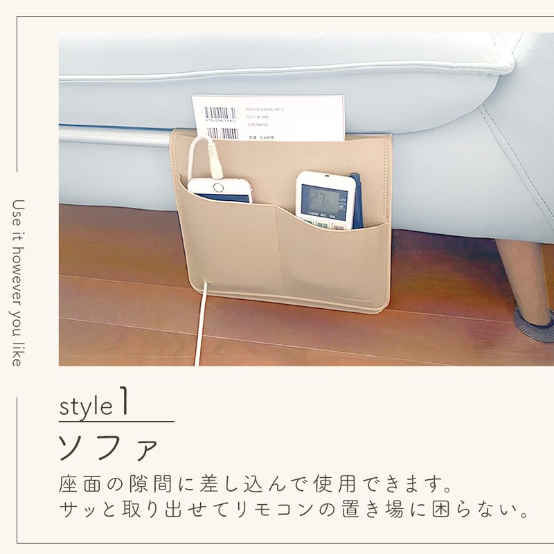 ソファサイドポケット リモコンポケット PUレザー シボ革 合皮 おしゃれ マウスパッド ベッドサイド 小物 リモコン スマホ スマートフォン 雑誌 タブレット 充電器 A4 収納 マルチポケット かわいい 挟む 後付け 北欧 ウォールポケット 整理整頓 プレゼント グレージュ