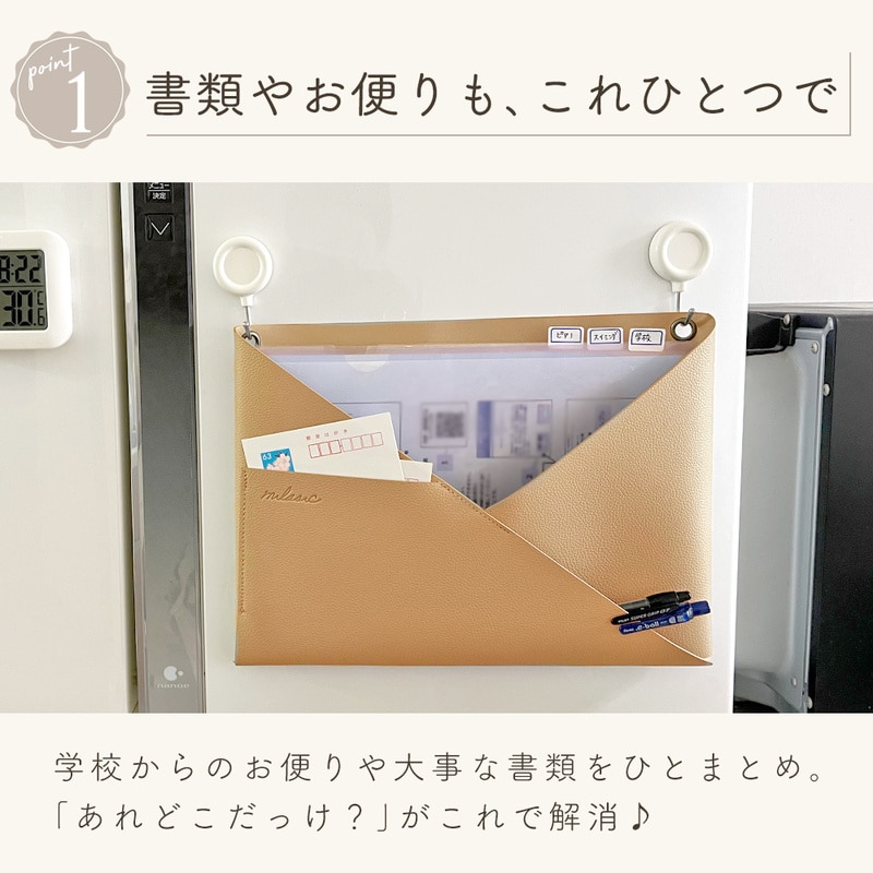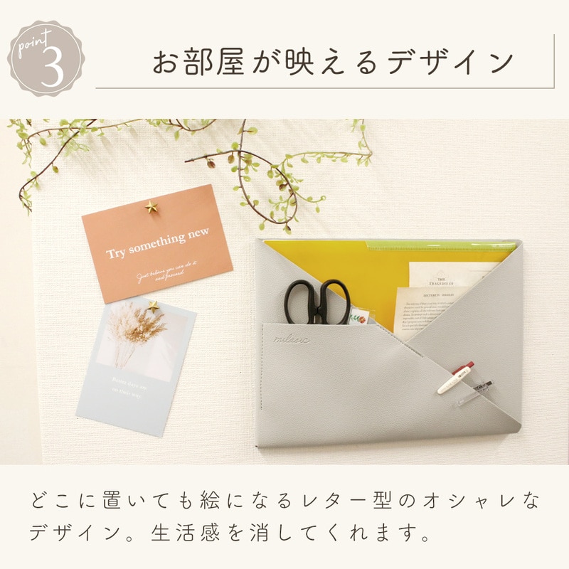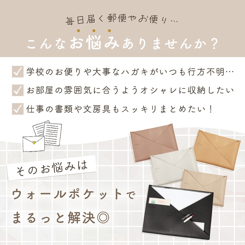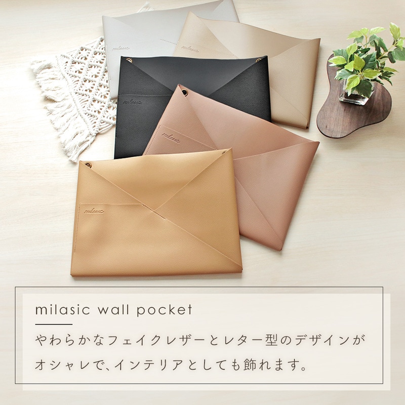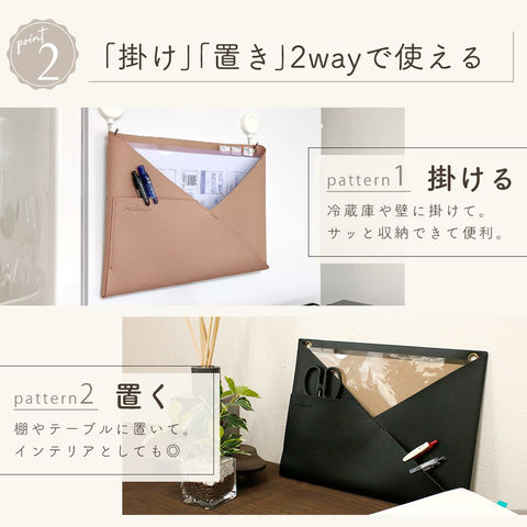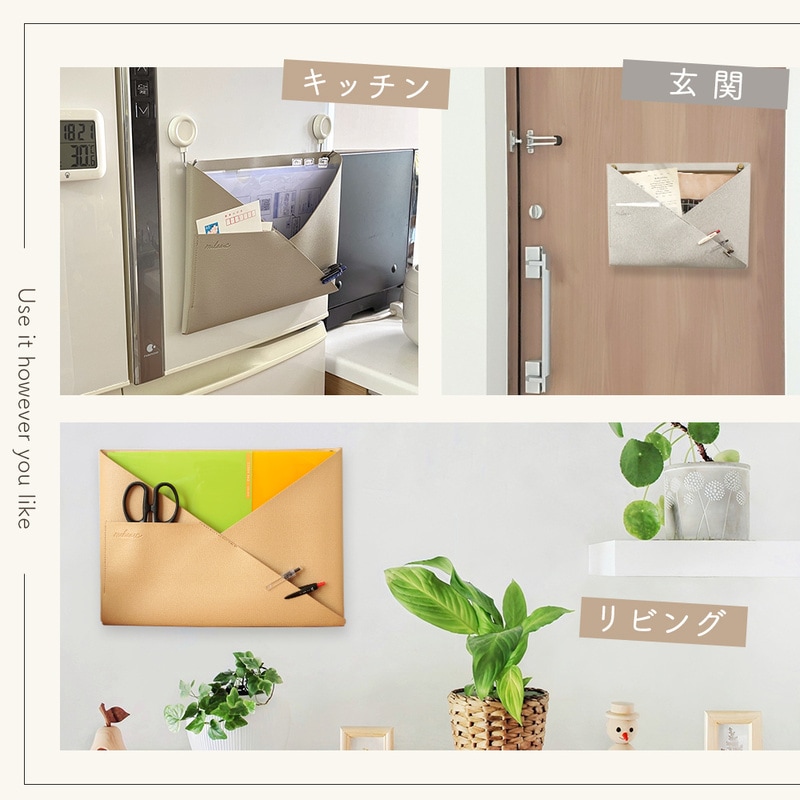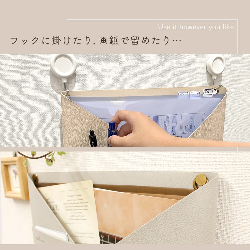 ウォールポケット PUレザー 正規品 2WAY シボ革 合皮 北欧 おしゃれ かわいい シンプル 書類 カード 壁掛け収納 ホルダー レター ポケット 手紙 ファイル 紙 省スペース A4 ハンガー 文房具 日用品 リビング キッチン 洗面所 ランドリー 冷蔵庫 インテリア グレージュ