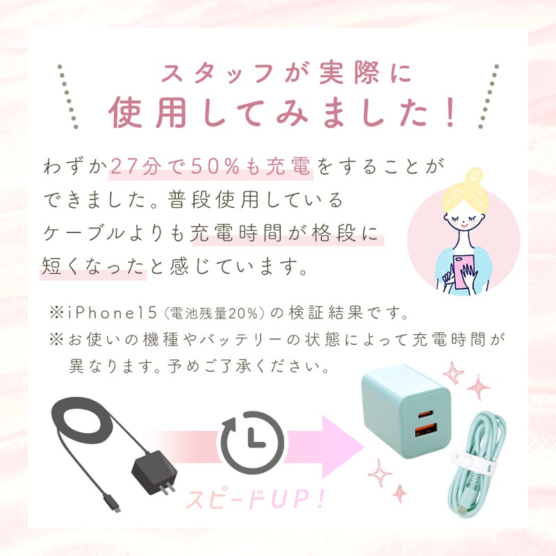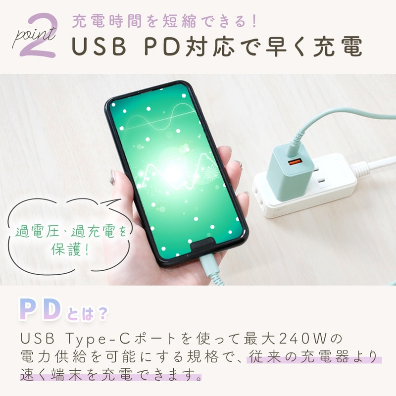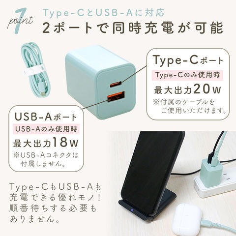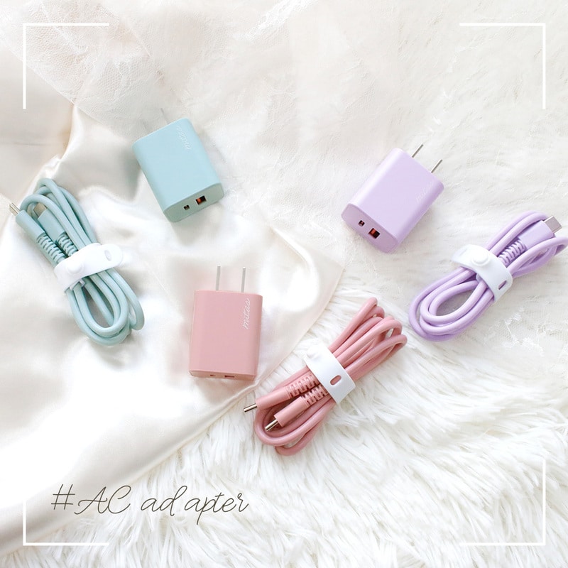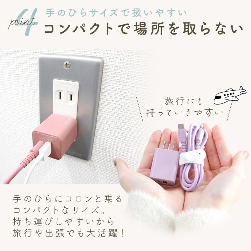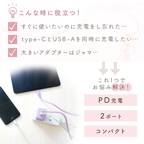ACアダプター 20W Type-C ケーブルセット USB充電器 PD 急速 2ポート タイプc Type-A 2口 チャージャー PSE認証 コンセント AC充電器 くすみカラー スマホ スマートフォン タブレット iphone android タイプA 正規品 コンパクト ライラック