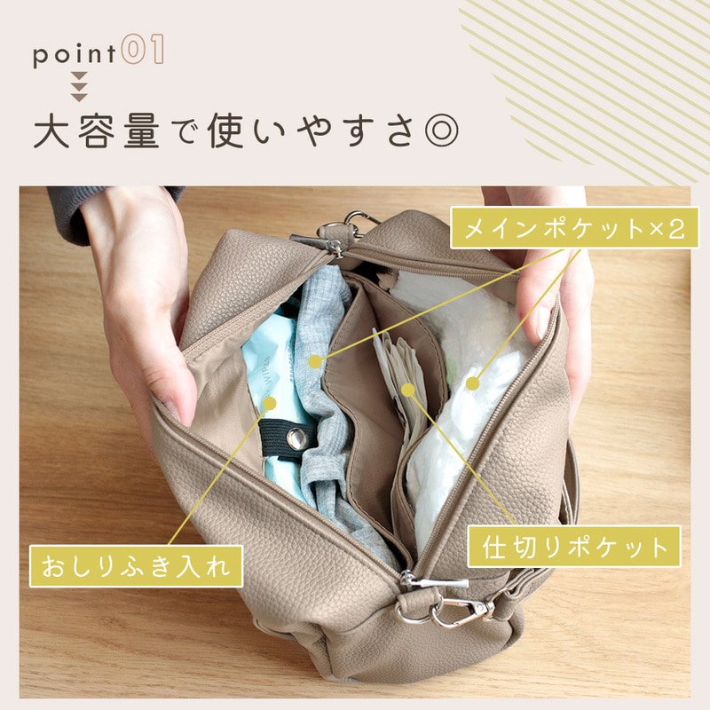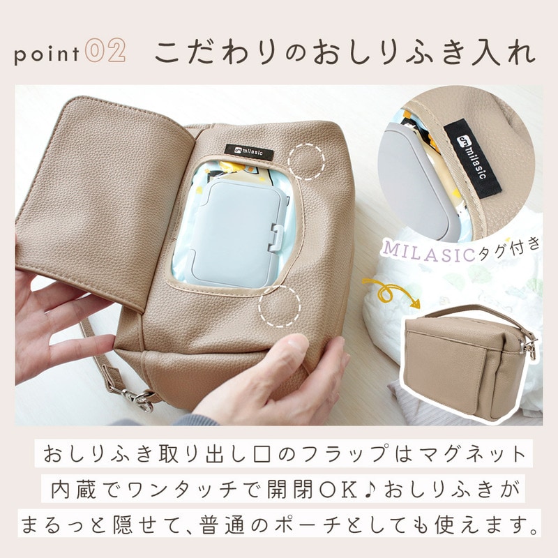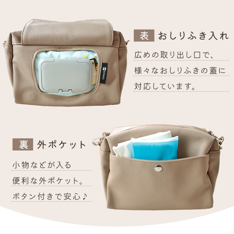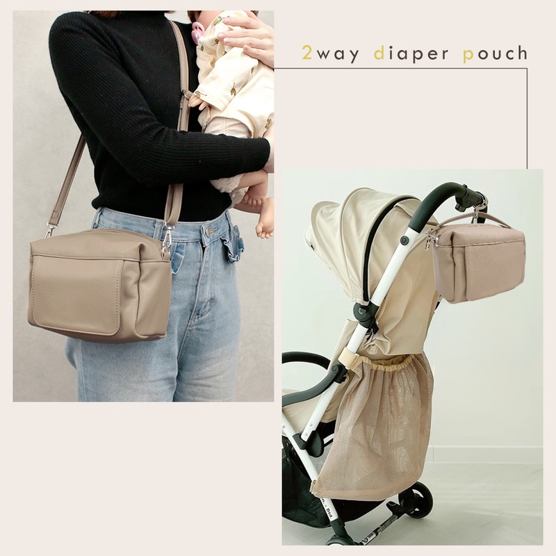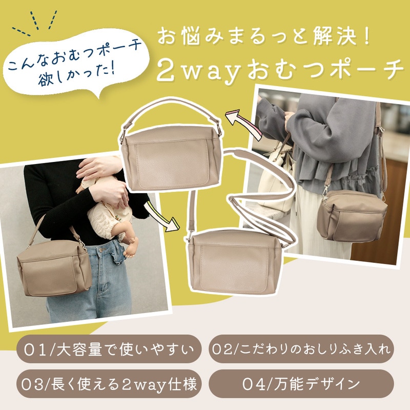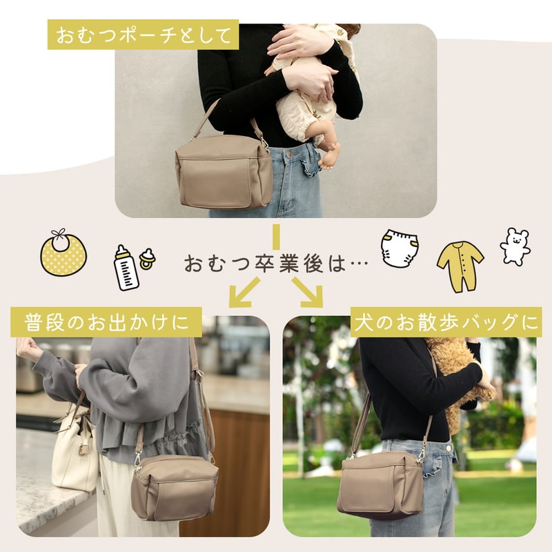 PUレザー2wayおむつポーチ おしゃれ 軽い 防水 おしりふき内臓 大容量 オムツ Lサイズ4枚収納 ケース ベビー 赤ちゃん 新生児 男の子 女の子 プレゼント 贈り物 出産祝い お母さん ママ パパ 育児 肩掛け 持ち手 ベルト シンプル ショルダー イヌ ベビーカー