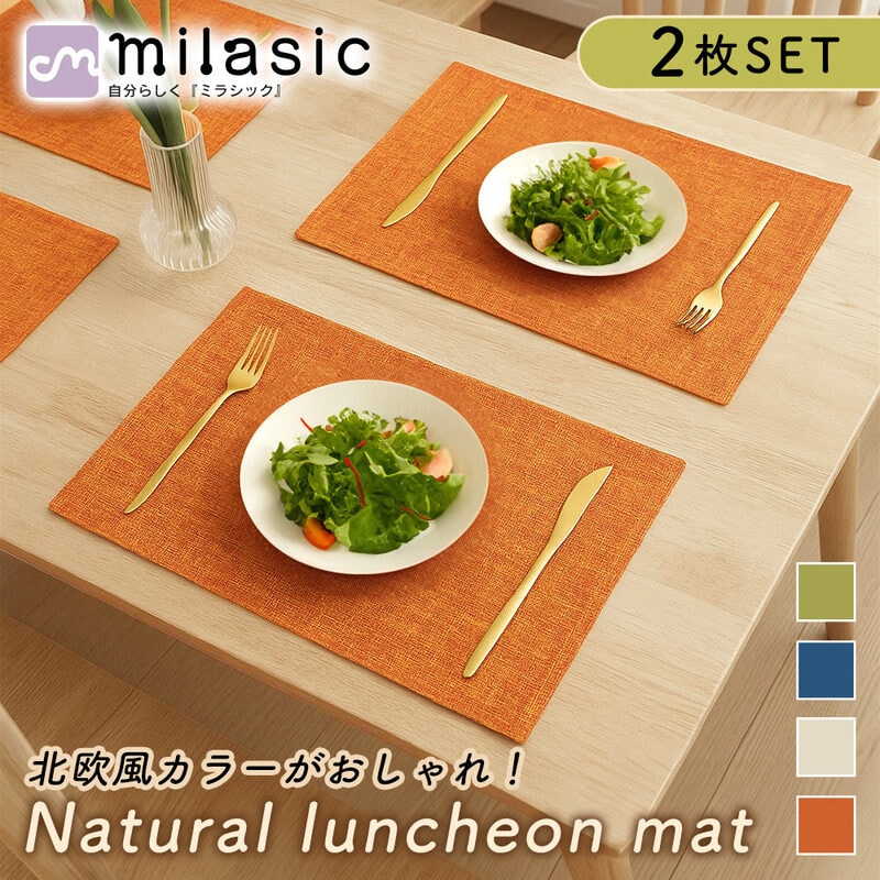 北欧風 ランチョンマット 2枚セット グリーン 46×30cm おしゃれ ナチュラル 和風 洋風 食卓 マット ランチマット 厚手 テーブルマット プレースマット 北欧 高級感 テーブル 保護 給食マット 給食 インテリア ダイニング テーブルクロス ダイニングテーブル