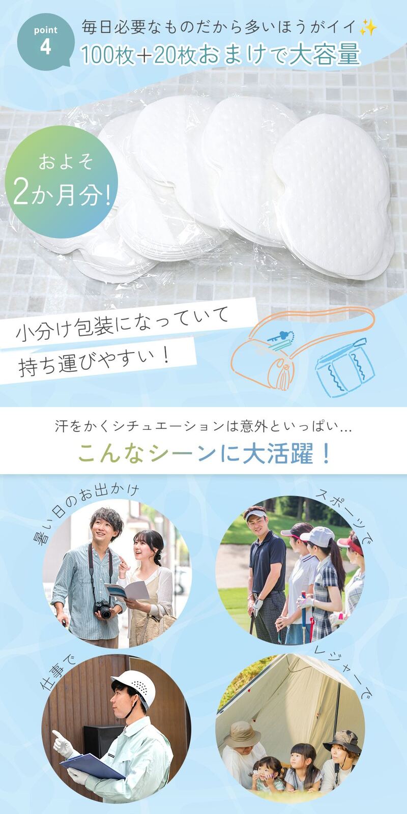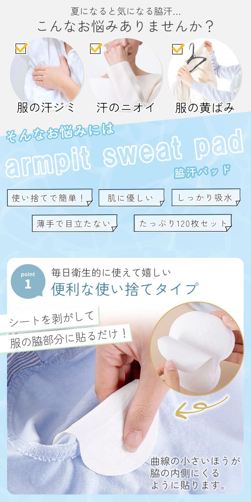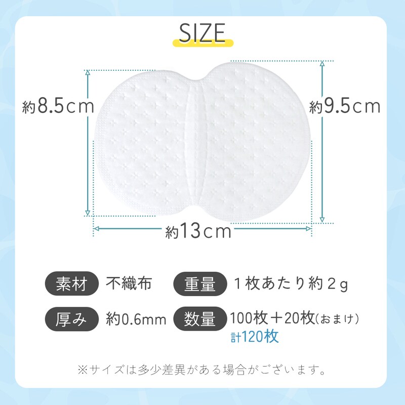 使い捨て汗脇パッド(合計120枚入り)です。