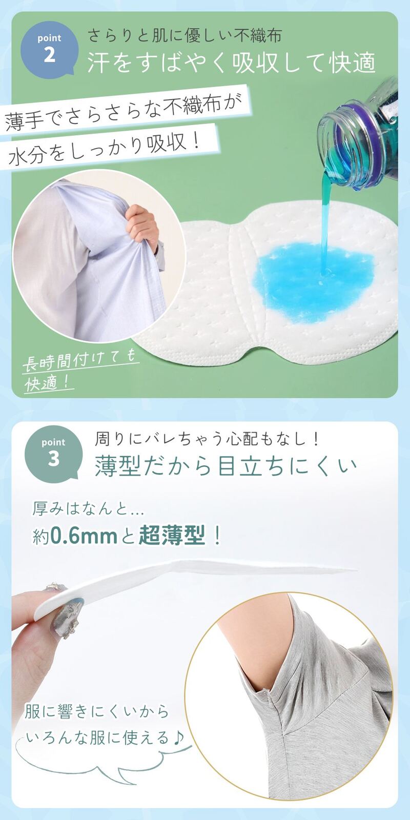肌に優しい不織布素材でできた超薄型(約0.6mm)のパッドは、