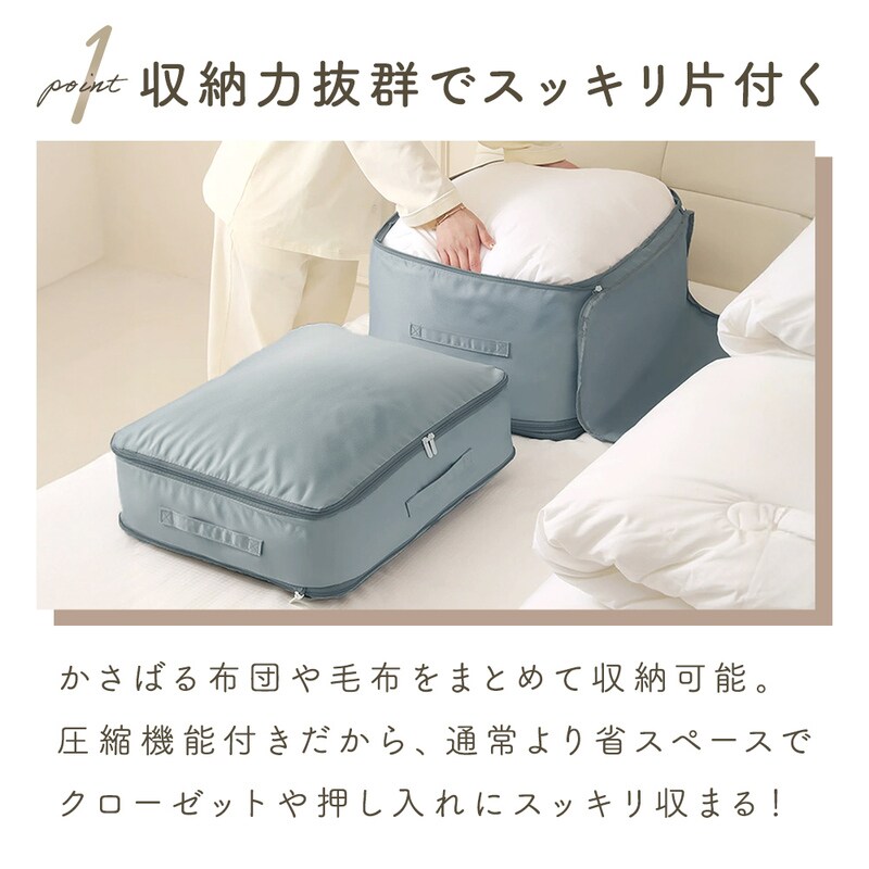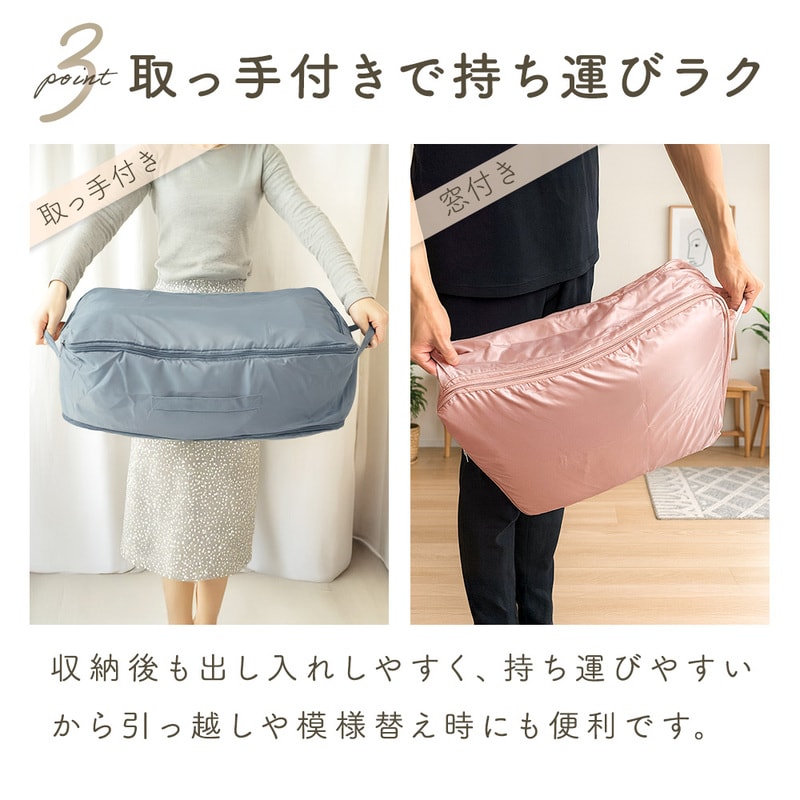 布団圧縮袋 B-窓付き-Mサイズ グレー 収納袋 簡単圧縮 掃除機不要 約40% ボリュームダウン スペース 節約 ふとん 持ち手 布団収納袋 洗える 引越し 模様替え 押入れ収納 軽量 使いやすい おしゃれ 折りたたみ シンプル 押入れ クローゼット