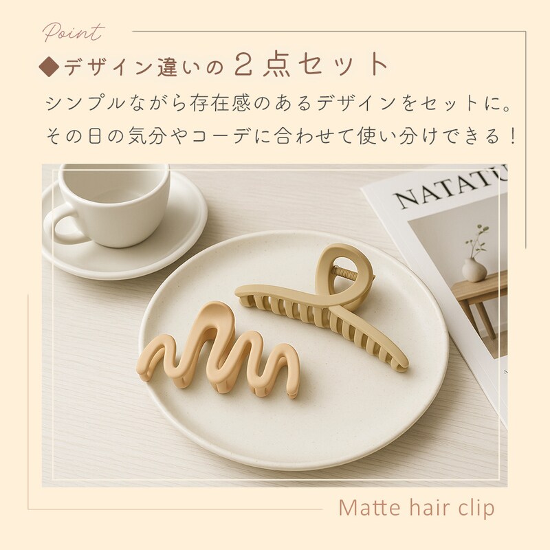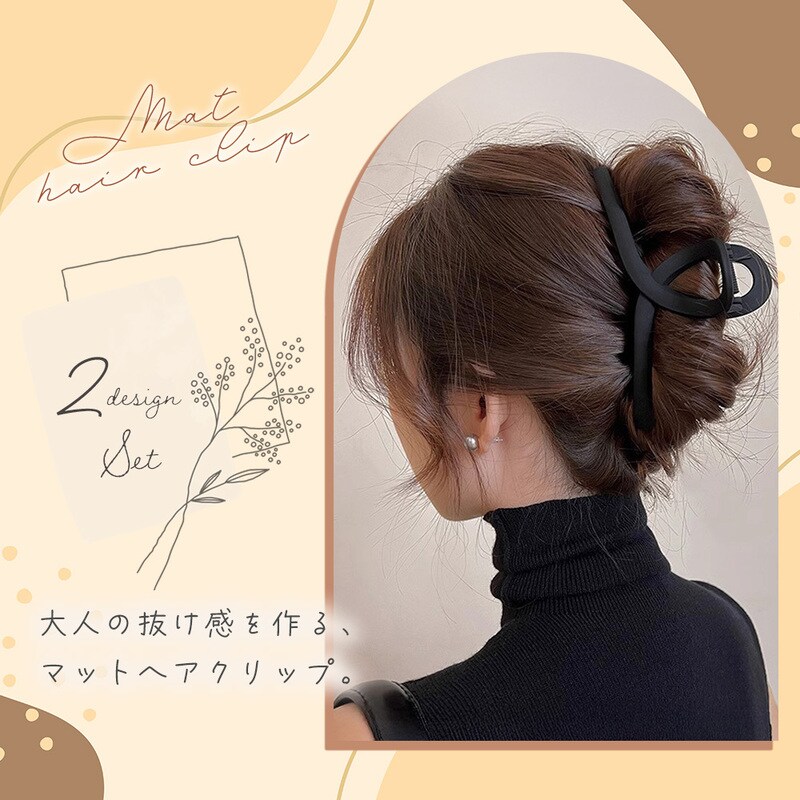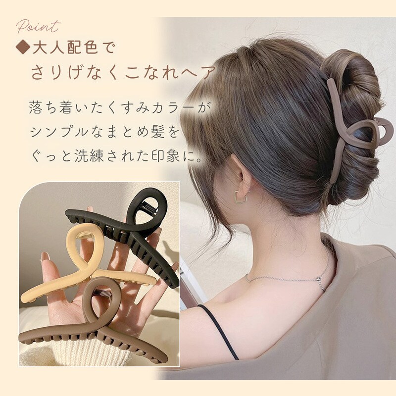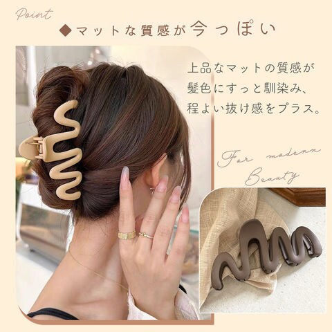 マットヘアクリップ 2個セット ブラウン マット質感 ニュアンスカラー レディース くすみ ループ型 リボン風 S字 ジグザグ 波形 くねくね かわいい おしゃれ 滑りにくい 髪留め ヘアアレンジ まとめ髪 アップヘア 家事 通勤 ブラック ブラウン ベージュ プレゼント