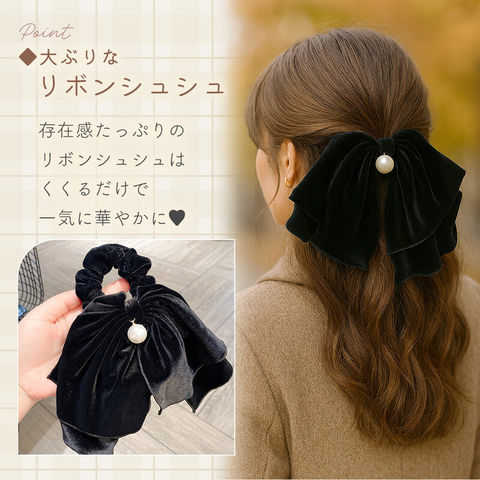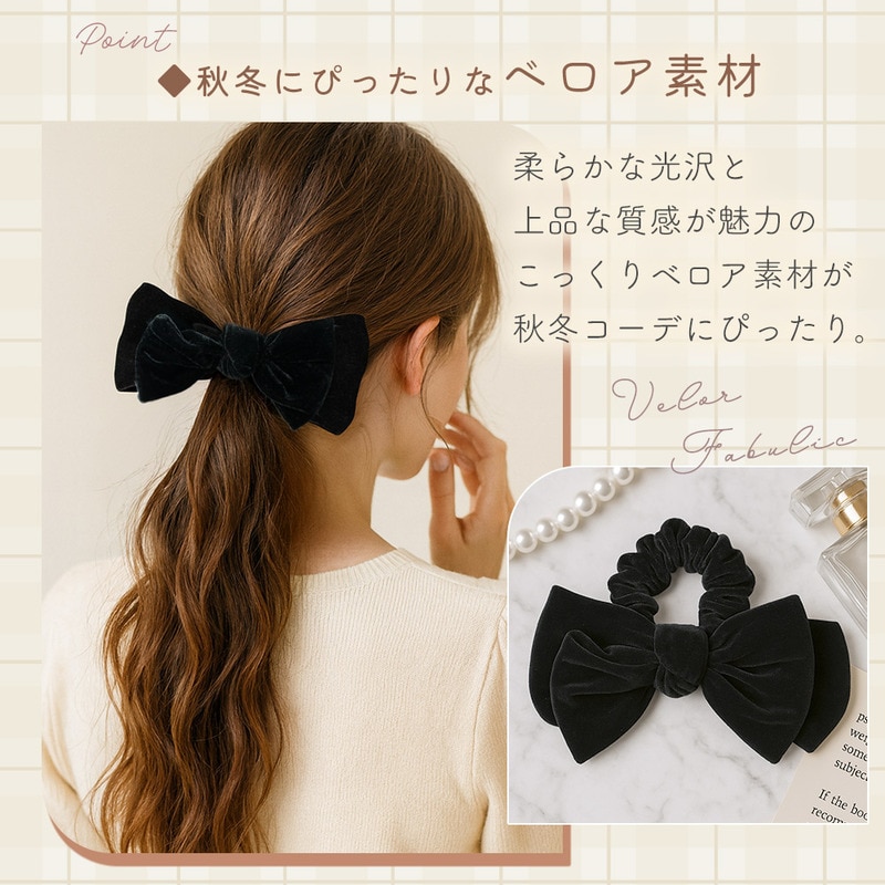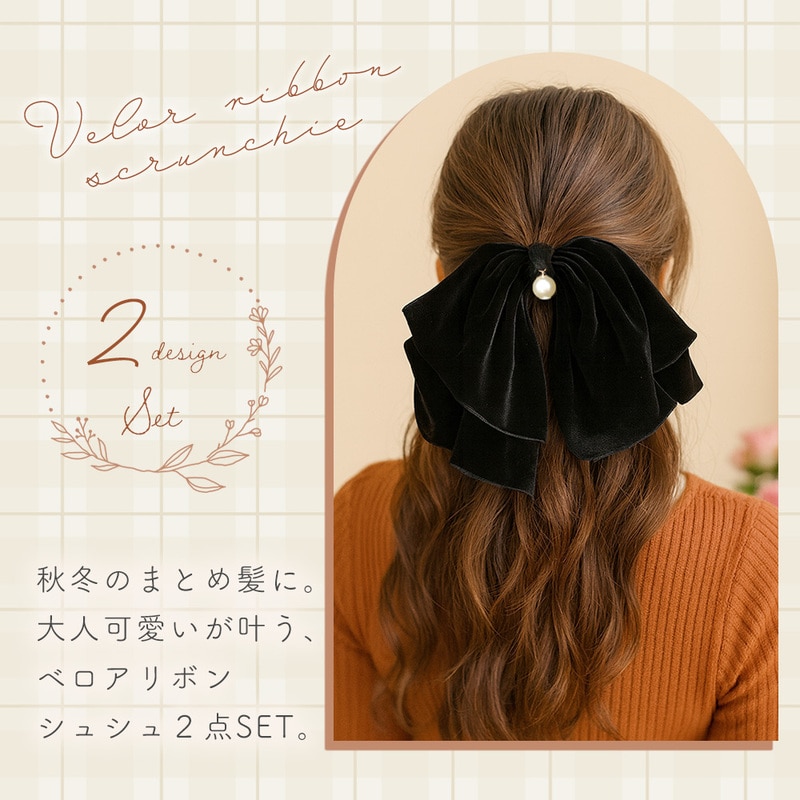 ベロアリボンシュシュ 2個セット ブラック シュシュ ベロア リボンベロアシュシュ リボン ベロア生地 ヘアゴム ヘアアクセサリー おしゃれ シンプル ベロアシュシュ 大人 かわいい 上品 まとめ髪 ポニーテール 大き目 ヘアアクセ アクセサリー 秋 冬 ヘアアレンジ