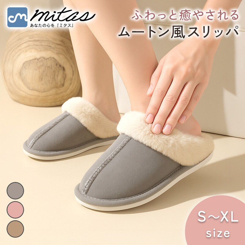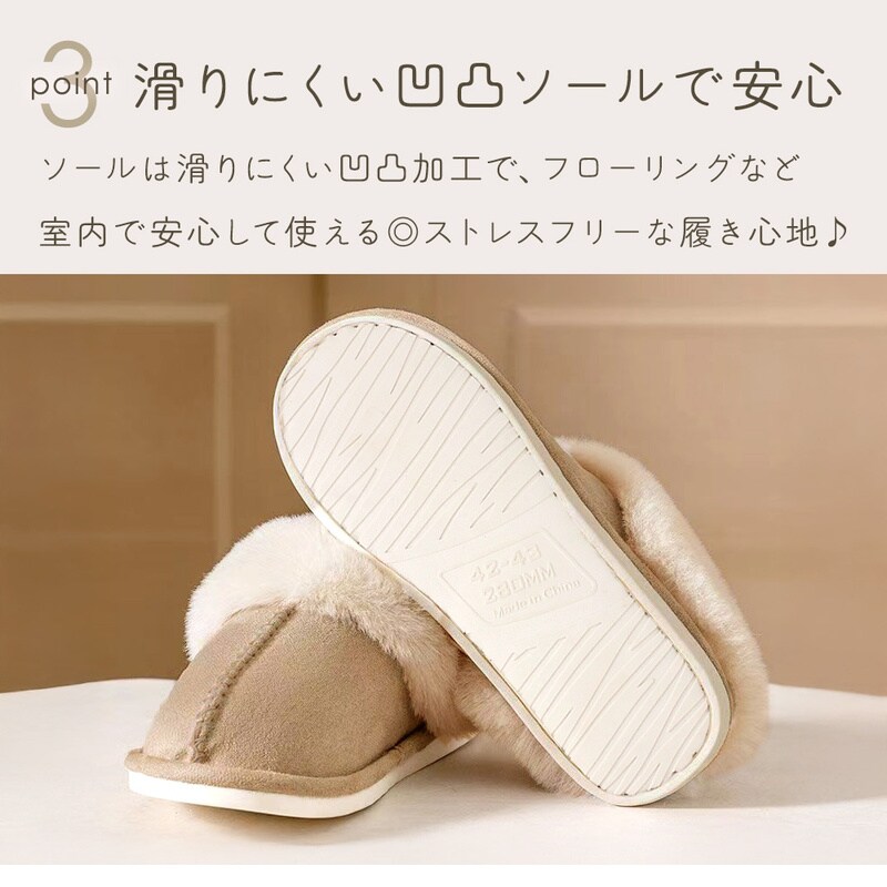 ムートン風スリッパ ミルクティー Lサイズ もこもこ かわいい おしゃれ スリッパ ナチュラル 来客用 レディース メンズ シンプル ルームシューズ 内履き 冬 あったか クッション 滑り止め リビング キッチン 寝室 冬 冬用 ボア 疲れない オフィス デスクワーク 暖かい ふわもこ