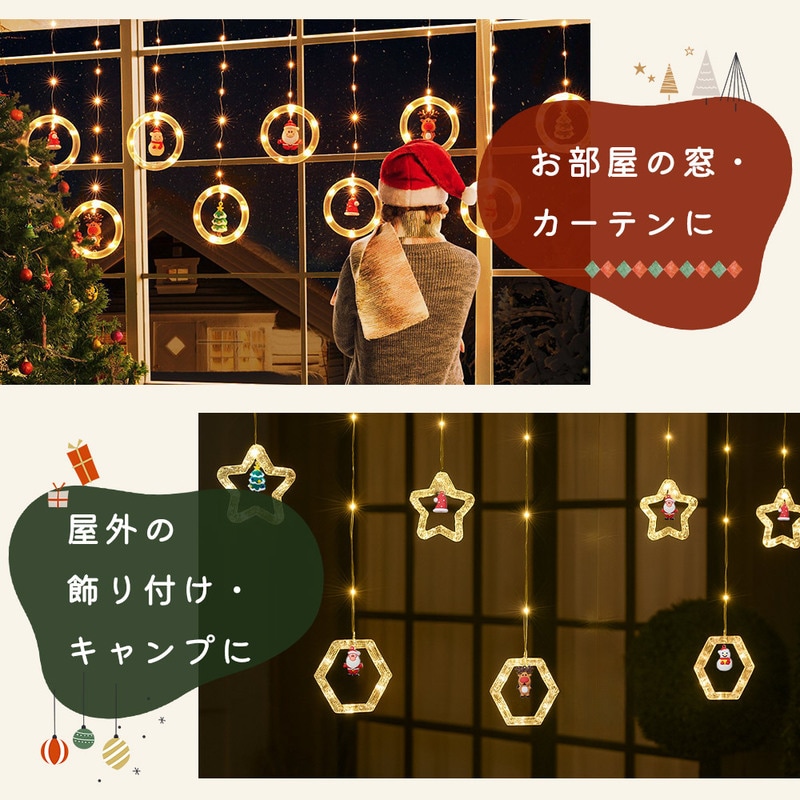 クリスマスライト 星+六角形 イルミネーション LED カーテンライト USB電源 リモコン付き タイマー 撥水 吊り下げ 窓 装飾 インテリア 飾りライト 北欧風 ガーランドライト 部屋飾り パーティー ギフト 多機能点灯 省エネ 柔らか 軽量 窓辺 壁面 デコレーション 室内