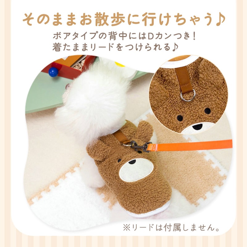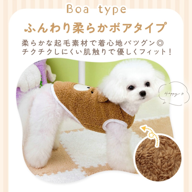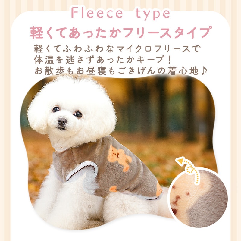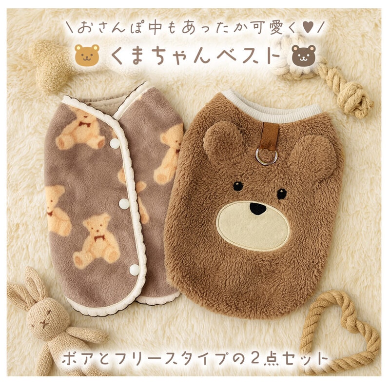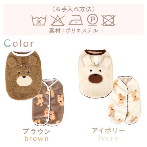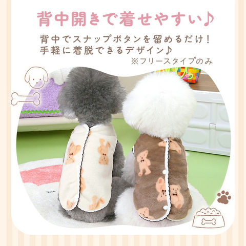 くまちゃん あったか ベスト アイボリー Sサイズ 犬用 くま柄 2点セット 冬用ウェア かわいい 犬服 クマ トップス ふわふわ ボア フリース タイプ Dカン付き ペットウエア 犬 猫 服 ドックウエア キャットウエア 可愛い 防寒 スナップボタン 背中開き ドッグウェア 冬用