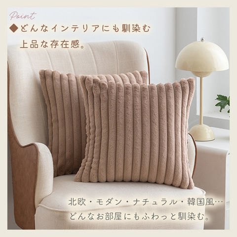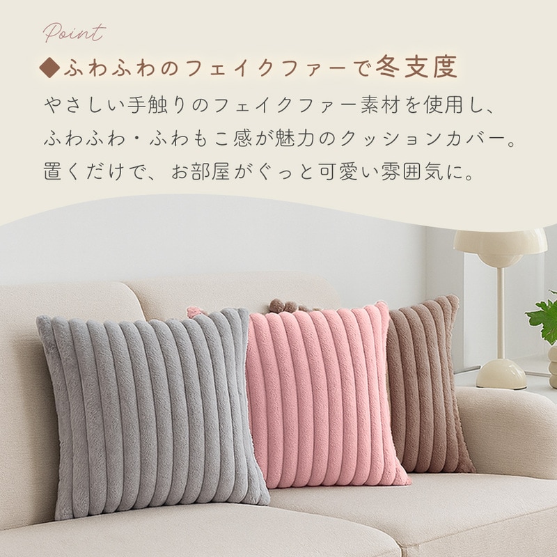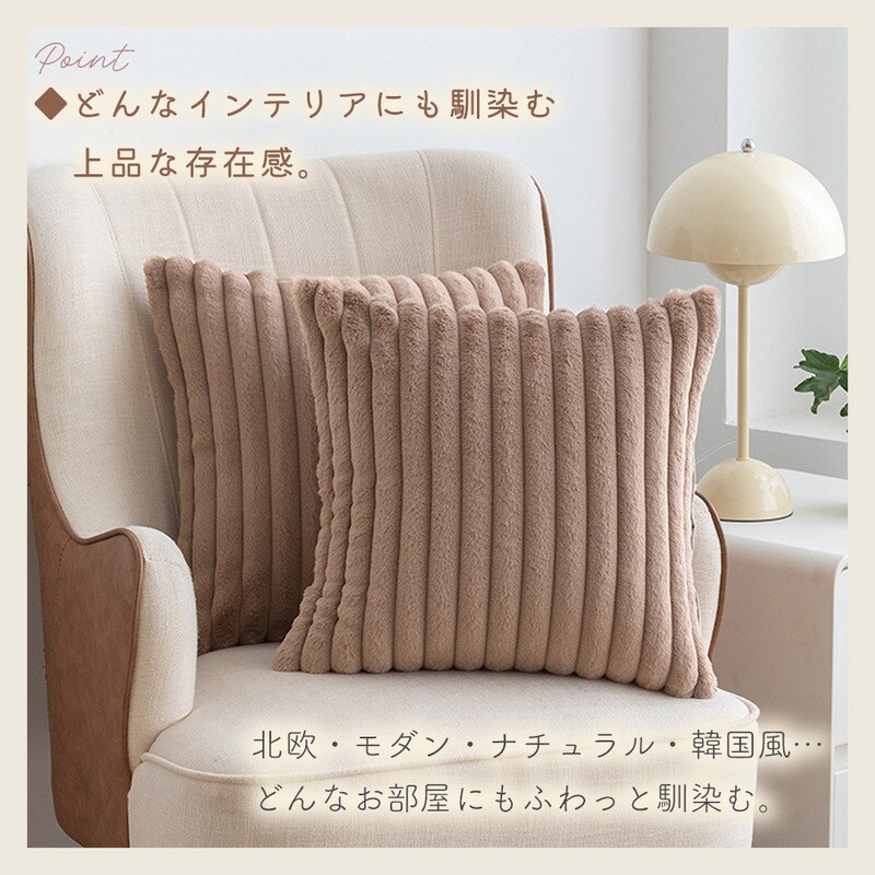 クッションカバー モカベージュ Sサイズ フェイクファー アンティーク風 おしゃれ モコモコ クッション カバー 45×45 50×50 両面 エコファー 角形 ファー 柔らかい ベルベット ふわふわ もふもふ もこもこ ソファ 背当て 高級感 カバーのみ インテリア かわいい 正方形 シンプル