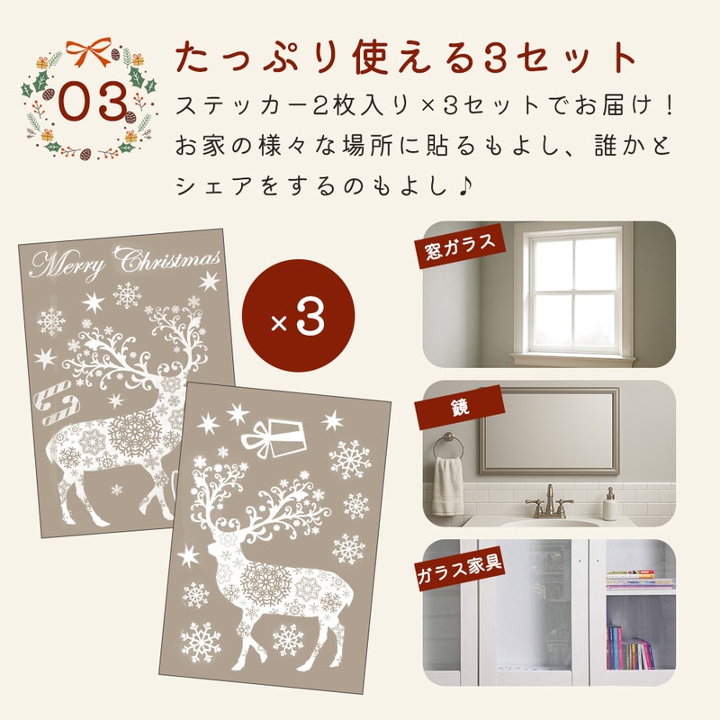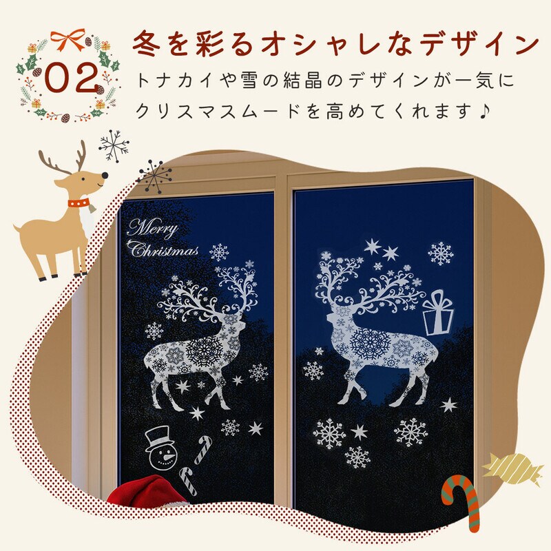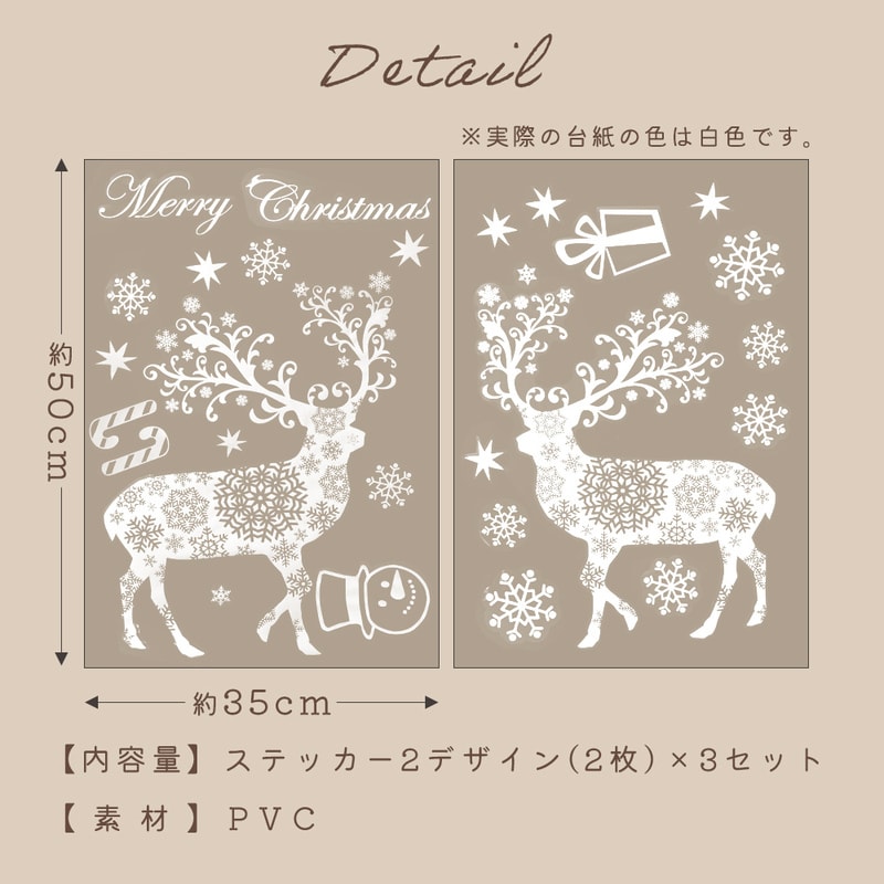 クリスマスステッカー ホワイト 3セット クリスマス 飾り ステッカー ガラス かざり シンプル 窓 入口 飲食店 冬 雪 貼って 剥がせる ウォールステッカー 雪の結晶 トナカイ スノーマン プレゼント 高級感 大人っぽい ボックス はがせる 装飾 飾り付け 店舗 リビング