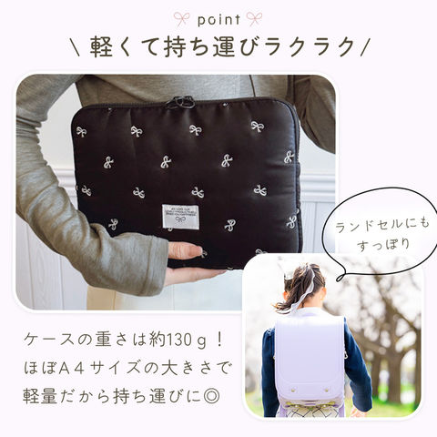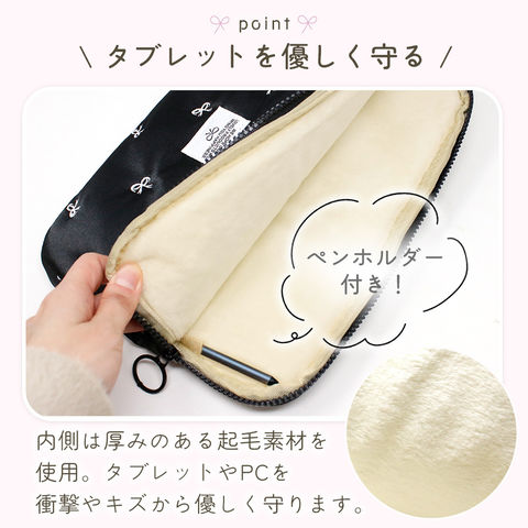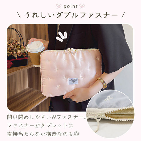 刺繍リボン タブレットケース ピンク 11インチ 多機種 A4サイズ 軽量 ダブルファスナー iPad ノートPC スリーブ パソコンバッグ A4ポーチ 収納 持ち運び 保護ケース ランドセル クッション 衝撃吸収 レディース 女の子 サテン風 起毛 上品 大人カワイイ おしゃれ