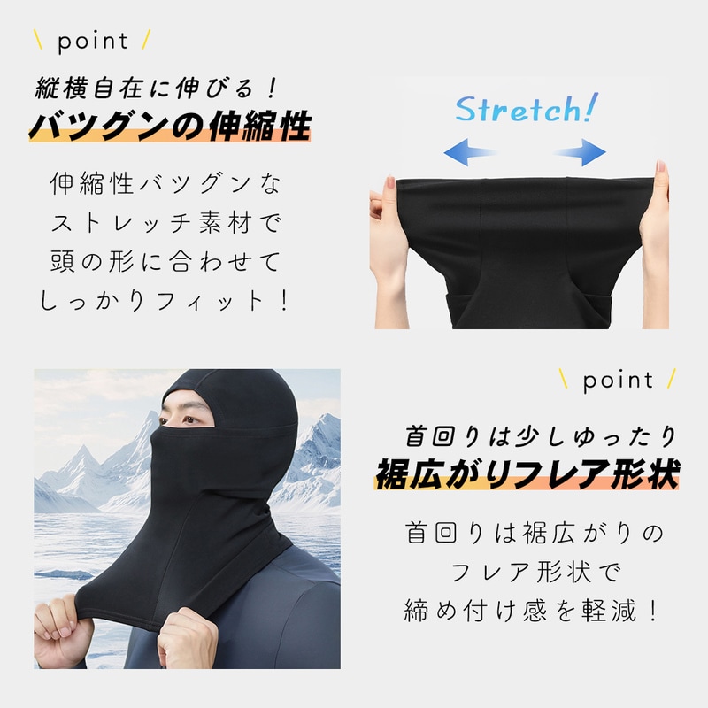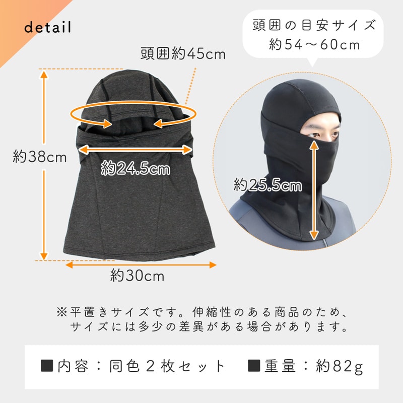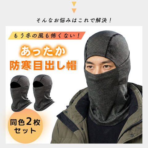 防寒目出し帽 2枚セット ダークグレー 目出し帽 フェイスマスク 裏起毛 防寒 あたたかい 寒風 通勤 通学 自転車 バイク 一体型 帽子 耳当て マスク マフラー 保温 首元 ストレッチ素材 薄い 3way ヘルメット インナー 伸縮性 フレア形状 スキー スノボ ジョギング 冬