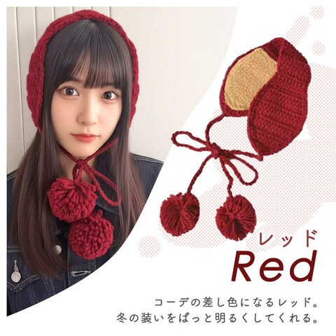 ポンポン付きニットイヤーマフ アイボリー イヤーマフラー イヤマフ イヤーウォーマー 冬 防寒 耳あて おしゃれ かわいい レディース キッズ ふわふわ ボア素材 あたたかい 手編み風 ナチュラル 軽量 紐付き 通勤 通学 自転車 お出掛け 秋冬 韓国 プチプラ