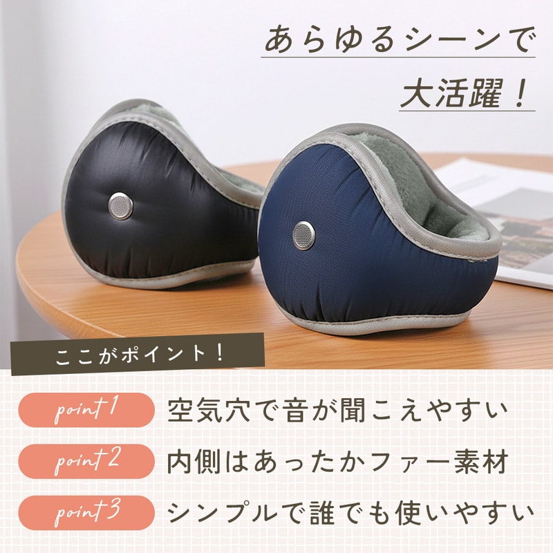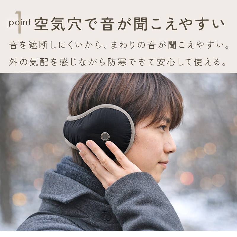 音を遮らない空気穴付きイヤマフ ブラック 後ろ掛け イヤーマフ イヤーマフラー 耳当て 防寒 あたたかい ファー素材 ダウン風 防風 冷気対策 寒さ対策 冬用 軽量 コンパクト 調節可能 シンプル おしゃれ メンズ レディース ユニセックス 通勤 通学 ランニング アウトドア