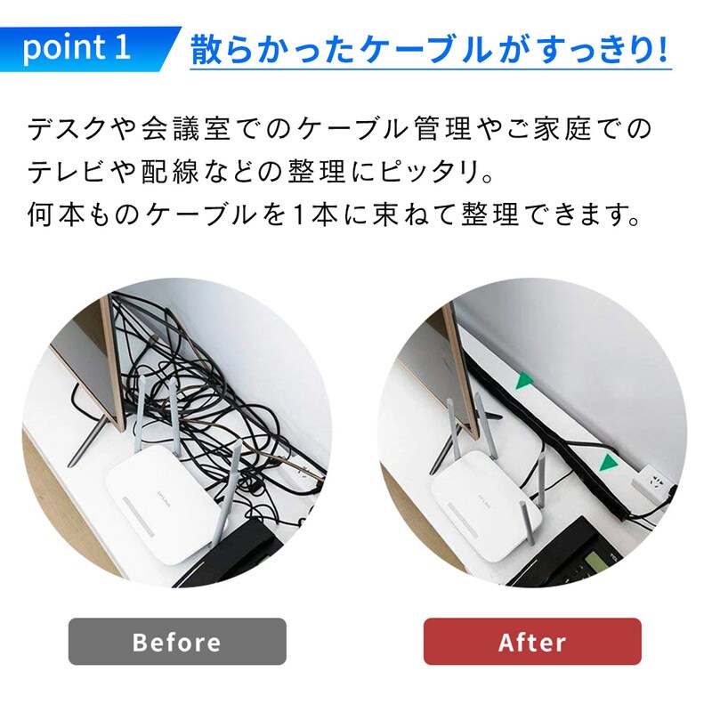 ケーブル収納カバー ケーブル 収納 約2m ケーブル まとめ マジックテープ ケーブルチューブ 配線 隠し 配線カバー 保護カバー コード収納 コンセント収納 デスク下 パソコン PC テレビ オフィス 整理 便利グッズ リバーシブル