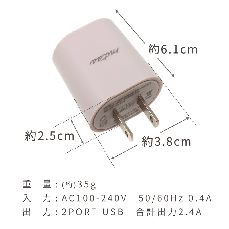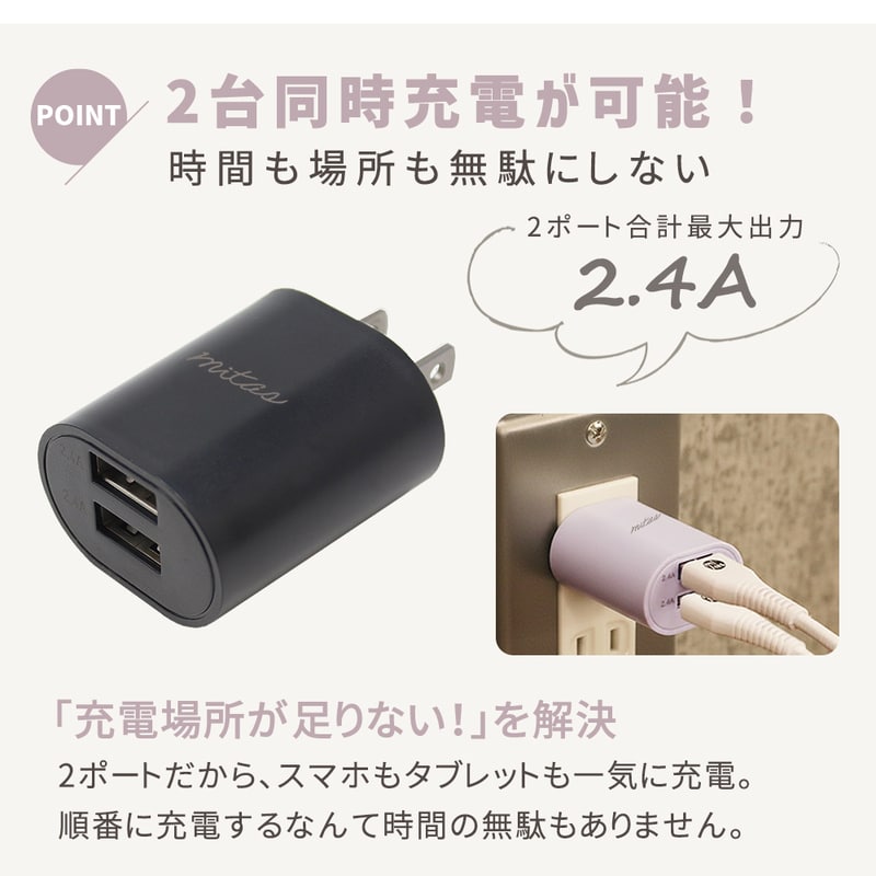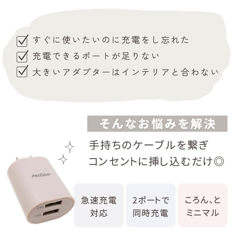 急速充電器 2.4A 最大12W くすみカラー ACアダプター 2ポート USB スマートIC 充電器 チャージャー Type-c タイプC PSE認証 USB充電器 AC充電器 アンドロイド アイフォン スマホ かわいい おしゃれ iphone ドライフラワー 本体+充電ケーブル【Bタイプ】
