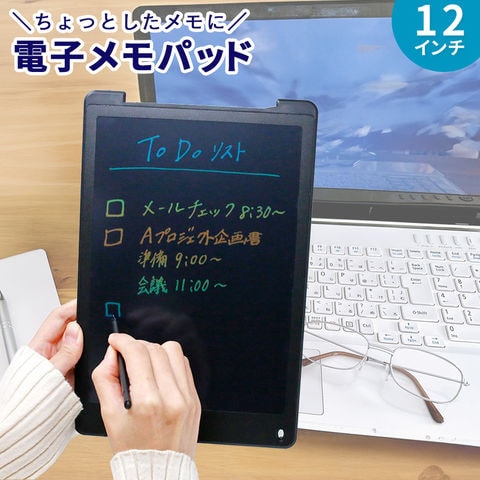 電子メモパッド 12インチ 電子メモ デジタルメモ デジタルノート 電子メモタブレット タブレット メニューボード メッセージボード 計量 薄型 メモ帳 スマートノート デジタルノート ノート 子供 キッズ おもちゃ