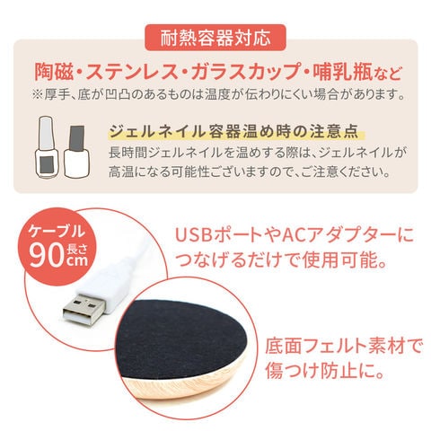 卓上 カップウォーマー USB ドリンク 保温 カップ ホットコースター 飲み物 保温器 コーヒー 紅茶 お茶 お酒 ホット ウォーマー ドリンクウォーマー 保温コースター あったかコースター 新生活 冬物 ウォルナット調