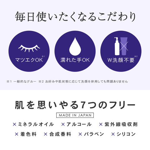※1 アルガニアスピノサ核油、マカデミア種子油、オリーブ果実油、コメヌカ油、ホホバ種子油、アボカド油、ソメイヨシノ葉エキス、セイヨウキズタ葉/茎エキス、アルニカ花エキス、アーチチョーク葉エキス、ザクロ果実エキス、ハマメリス葉エキス、セイヨウオトギリソウ花/葉/茎エキス、ブドウ葉エキス