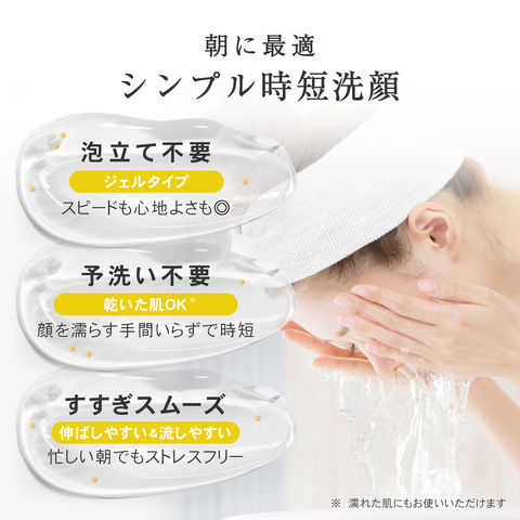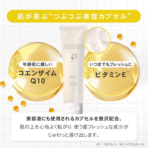ぷるんと潤う、たった30秒の時短ジェル洗顔。コエンザイムQ10(※1)×ビタミンE(※2)の美容カプセルが使う度にじゅわっと溶け出します。洗顔後の乾燥を抑えて、メイク乗り抜群のなめらか肌へ。