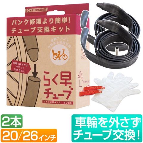自転車 チューブ 20インチ 26インチ 2本 セット 英式 らく早チューブ かんたん交換 タイヤレバー グローブ付き 20×2.125 26×1 3/8 自転車チューブ 英式 30mm 共和 タイヤレバー シティサイクル 軽快車 折りたたみ自転車 BMW 小径車 チューブ交換 送料無料