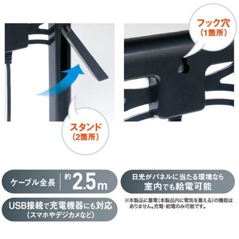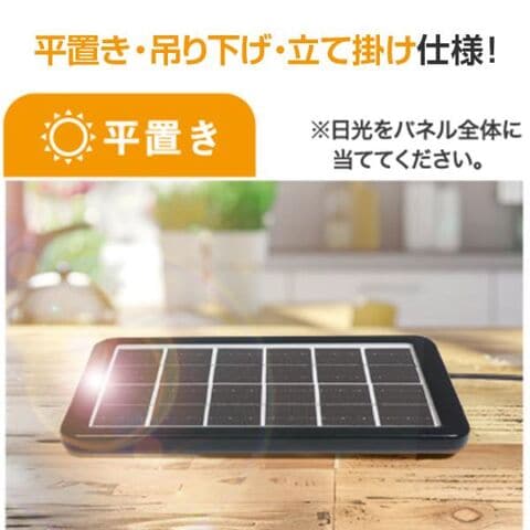 ソーラーパネル搭載、太陽光だけでスマホやタブレットなどのデバイス機器を充電できます。