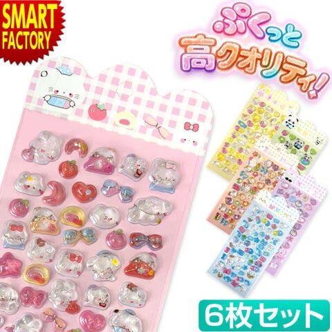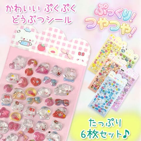 かわいい ぷくぷく どうぶつシール 【6枚セット】 ぷにぷに シール 立体シール 3Dシール クリア キラキラ ご褒美シール デコシール アニマル 動物 かわいい おもしろ 交換 シール帳 イベント 幼児 子供 キッズ 大人 送料無料