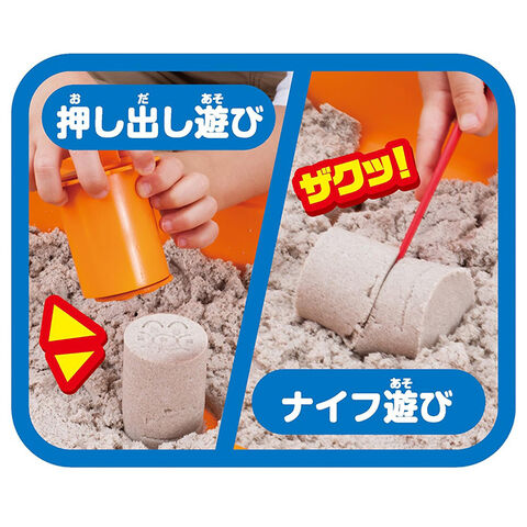■セット内容 : ケース×1、フタ×1、砂型(大)×3(アンパンマン・ばいきんまん・ドキンちゃん)、砂型(小)×6、サンドナイフ×1、押し出し器×1、プレイシート×1