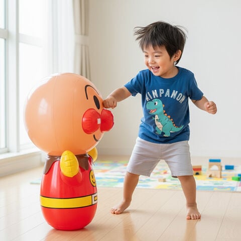 ● アンパンマンを叩くとゆらゆらしながら起き上がる大きな空気ビニール製の人形です。